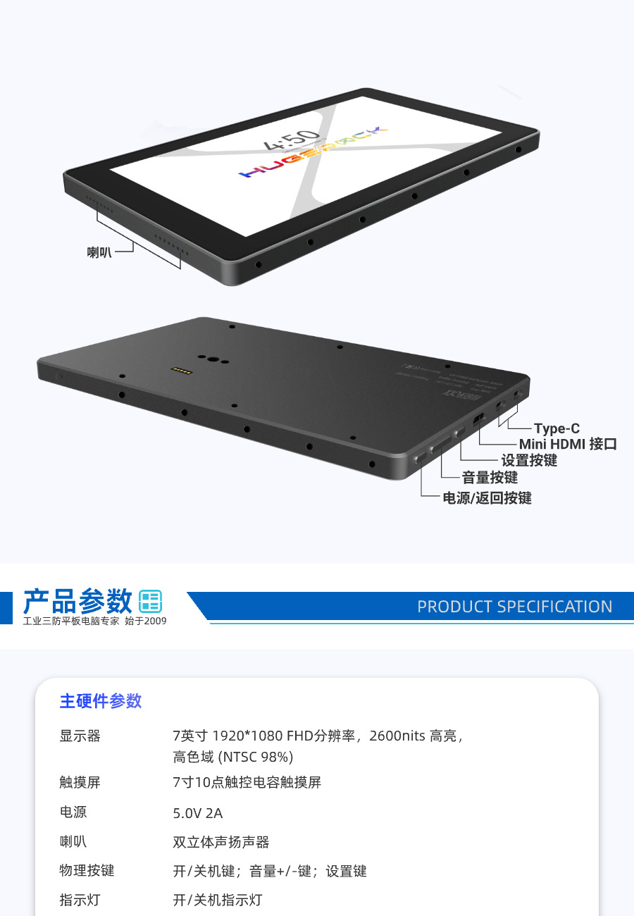 HUGEROCK PD70 실외 휴대용 7inch 풀 HD 터치 모니터 2600니트 고휘도 확장 화면
