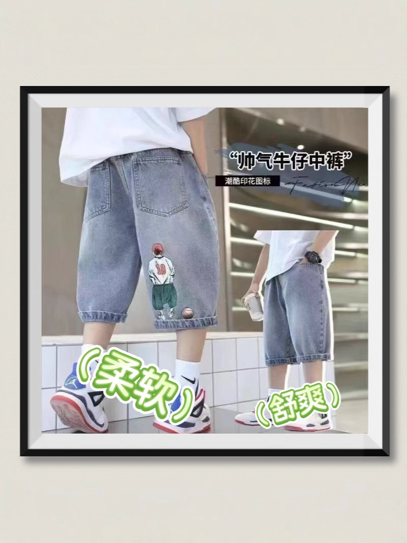 아동 청바지 여름 얇은 새로운 아동복 반바지 여름 옷 소년 캐주얼 시장 소프트 카프리스토어 가기