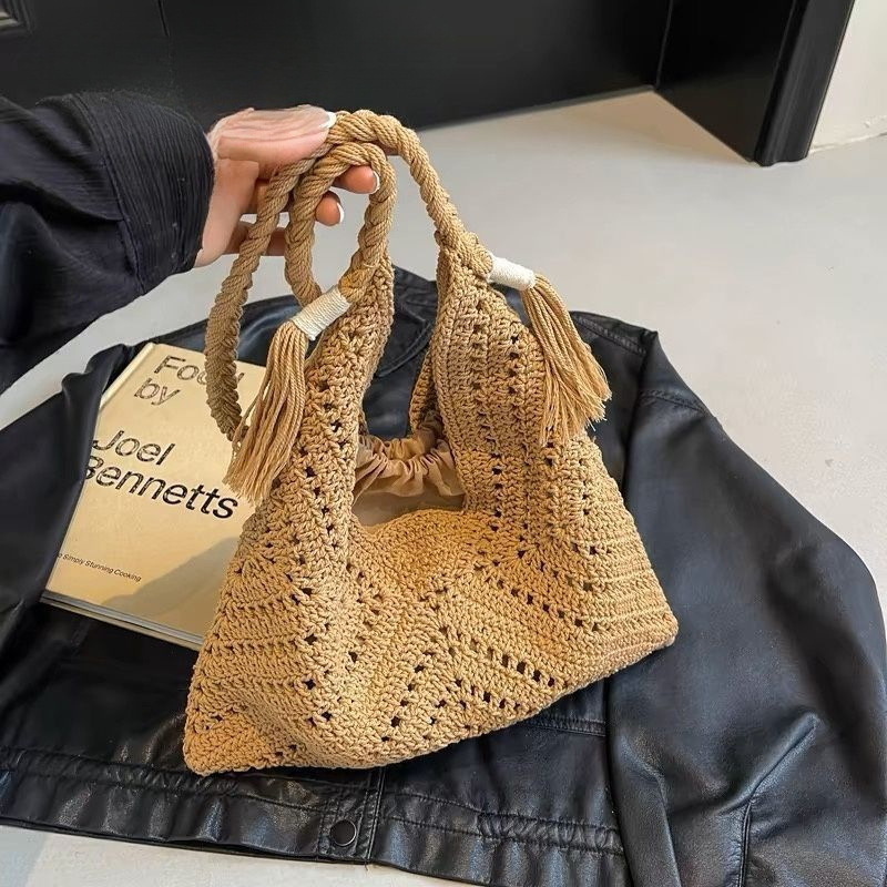 점장이 추천하는 절묘한 핸드메이드 니치 중공 삼각형 가방, 통근용 숄더백, 해변 휴가 가방스토어 가기