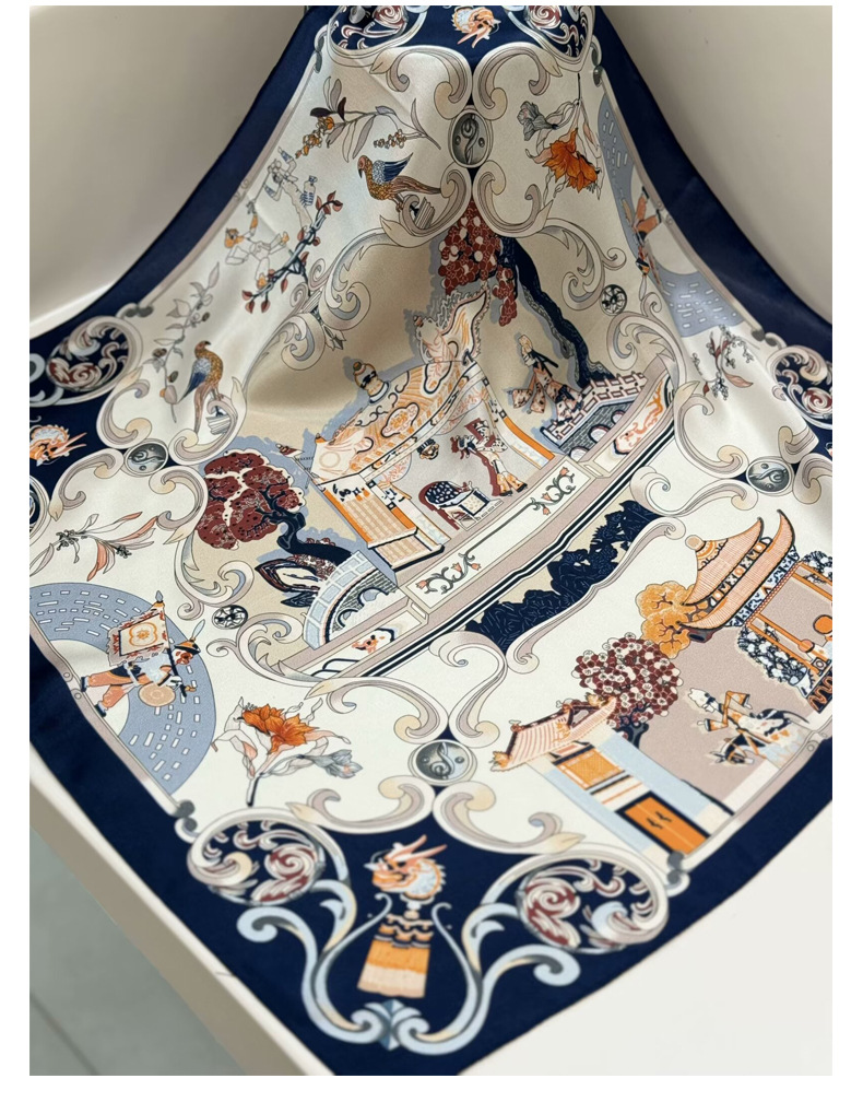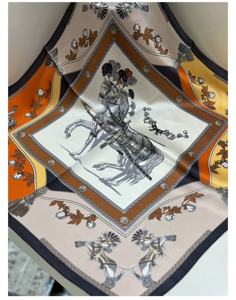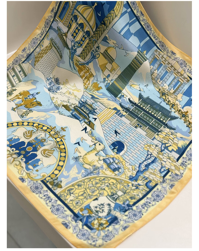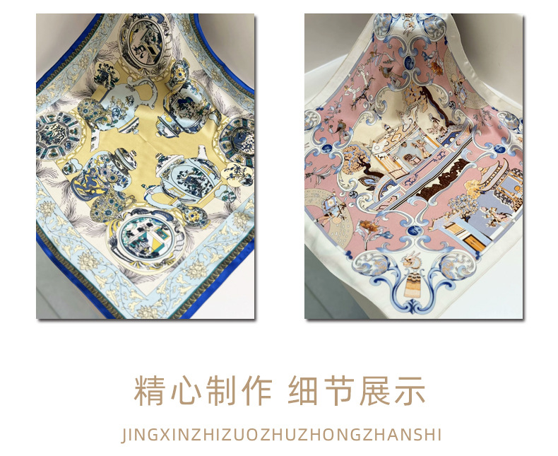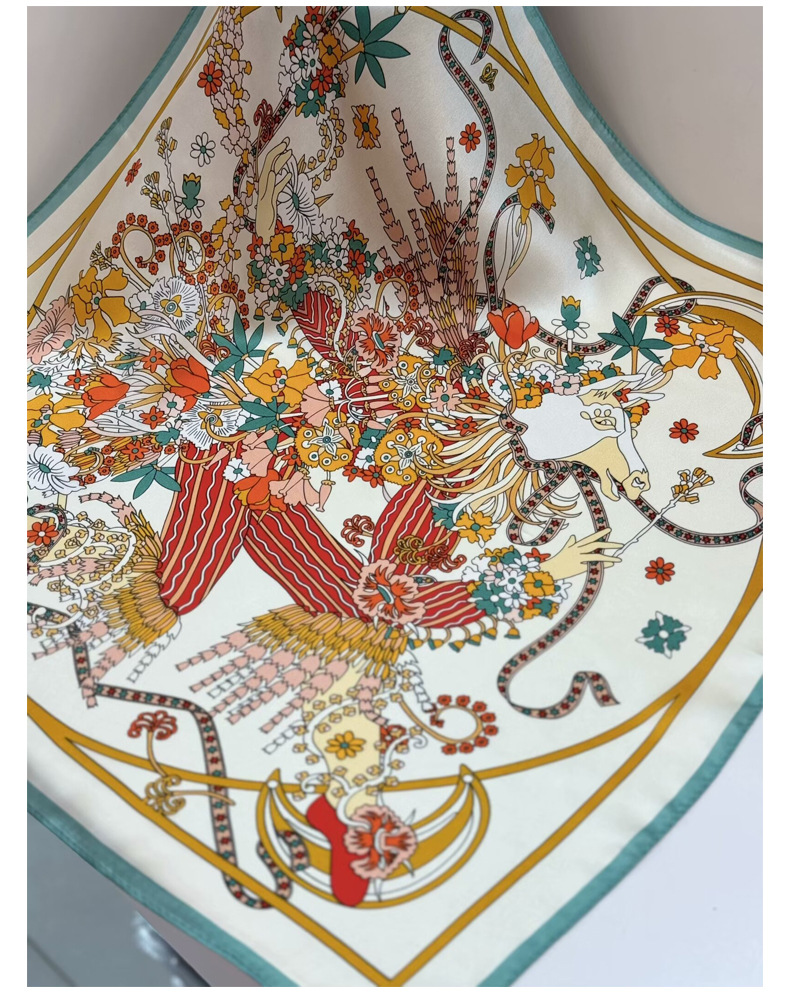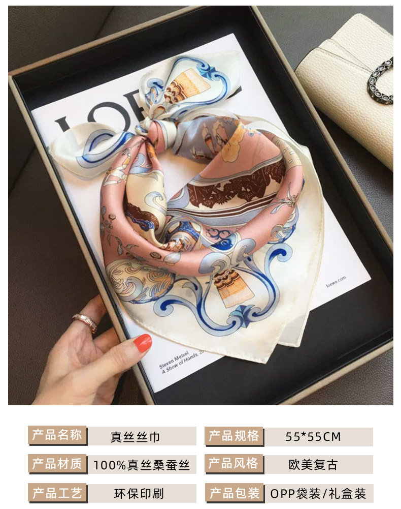 여성용 실크 스카프 100% 뽕나무 실크 53 실크 작은 사각형 스카프 유럽과 미국의 인쇄 문학 스카프 봄과 여름 바캉스용 바인딩 스카프스토어 가기