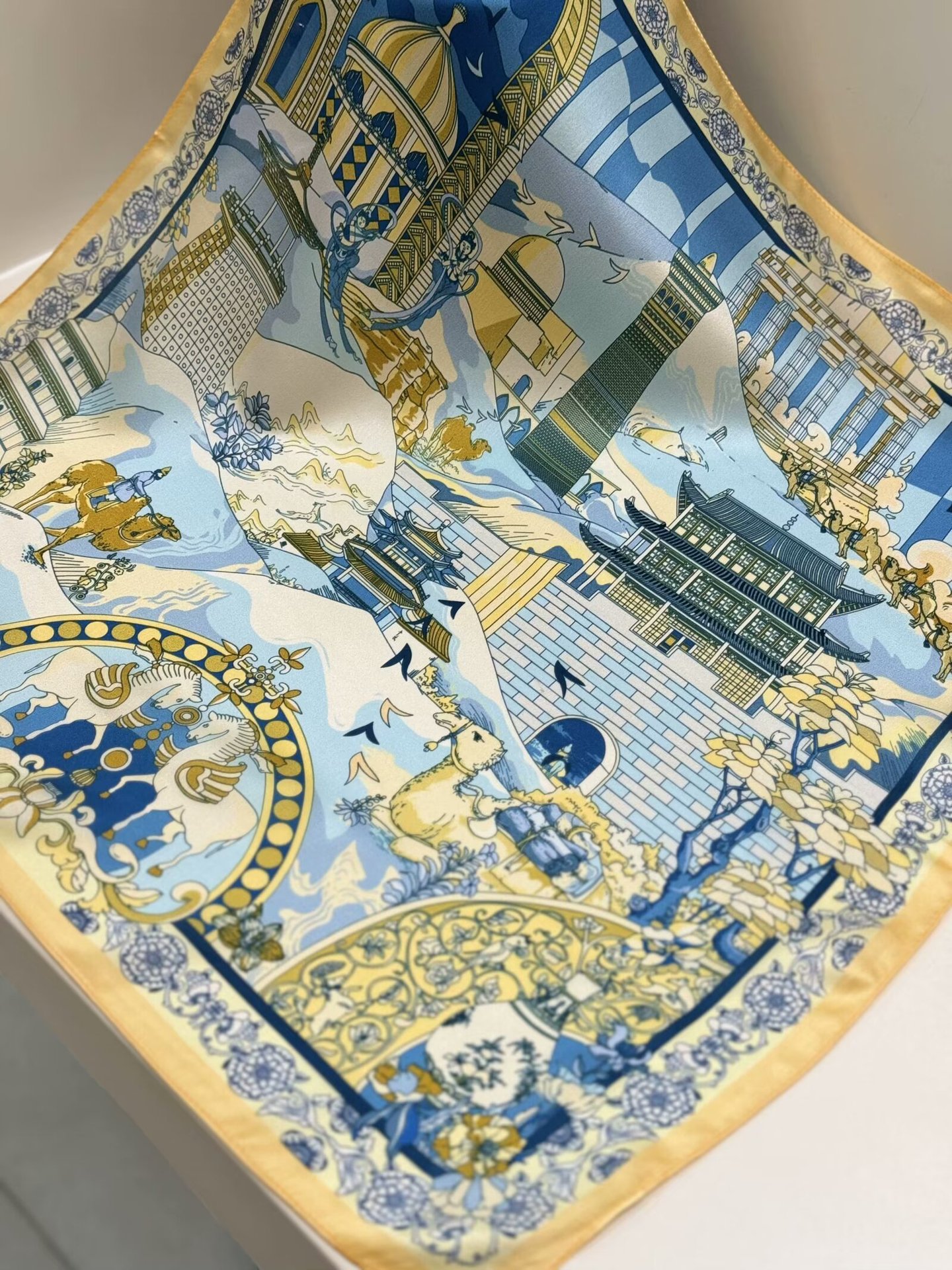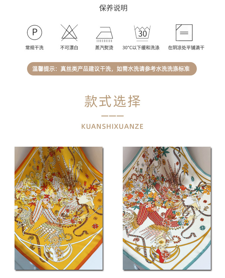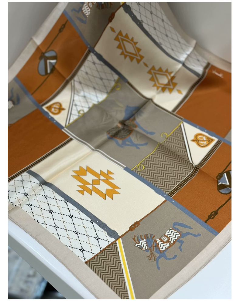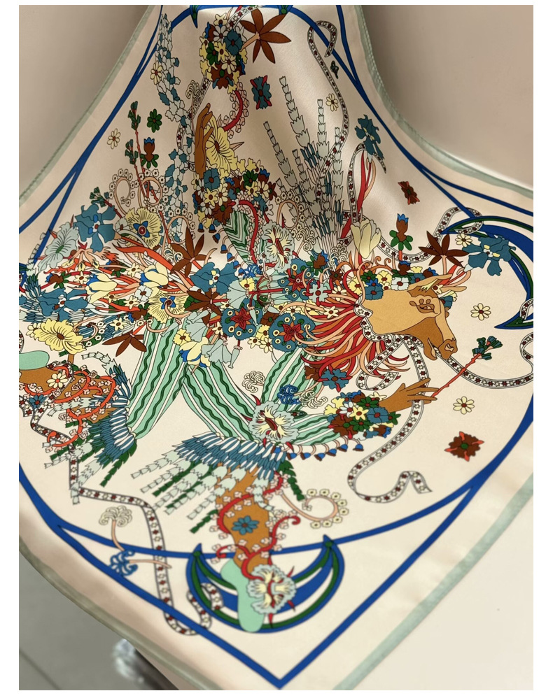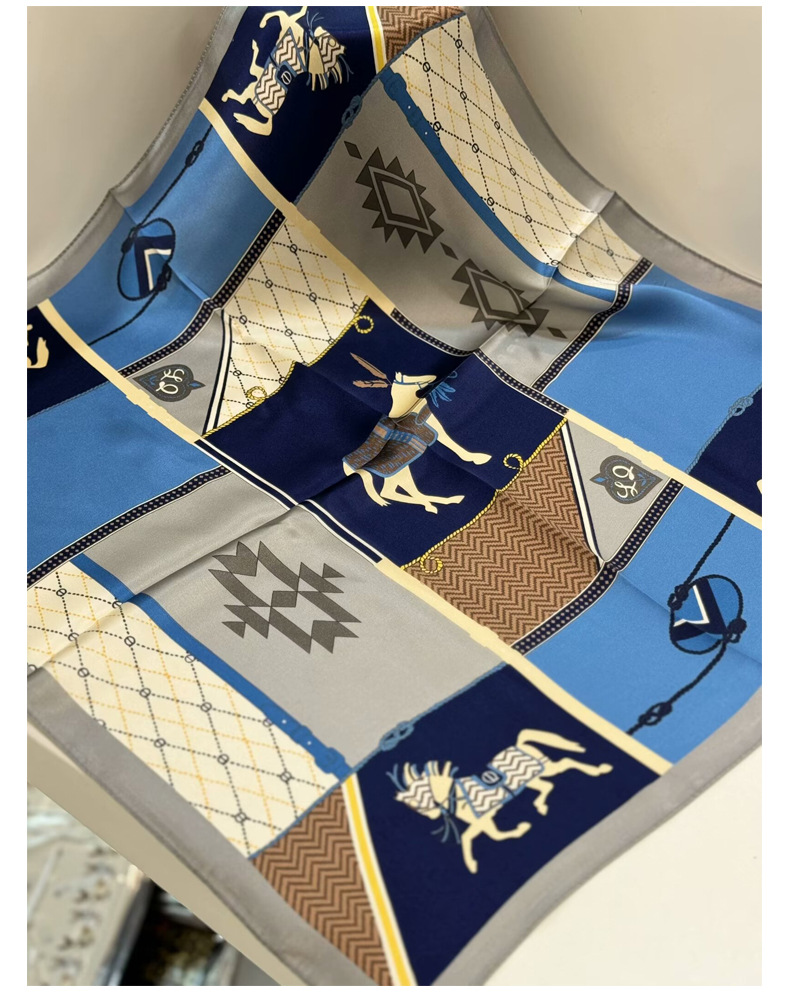 여성용 실크 스카프 100% 뽕나무 실크 53 실크 작은 사각형 스카프 유럽과 미국의 인쇄 문학 스카프 봄과 여름 바캉스용 바인딩 스카프스토어 가기