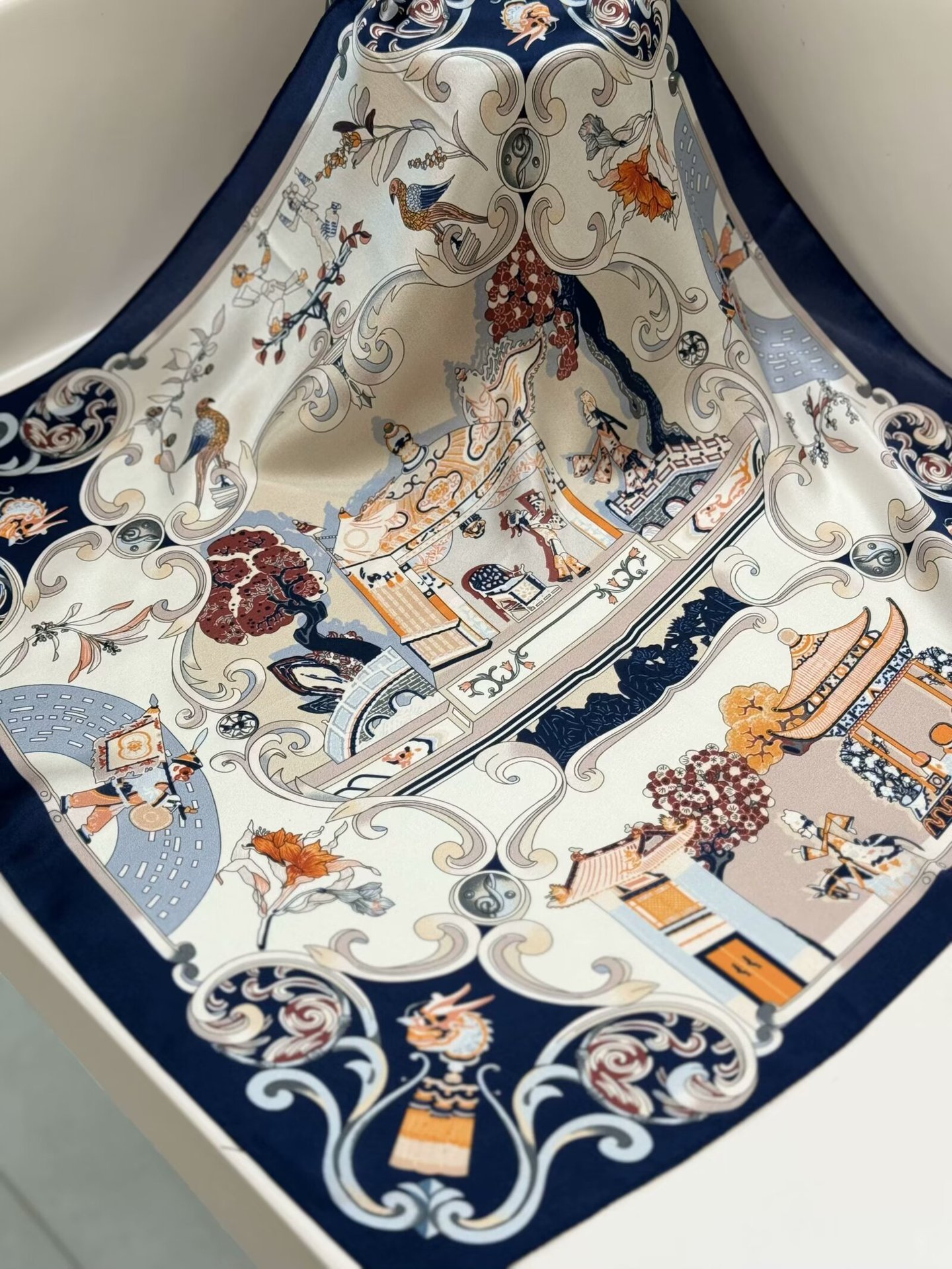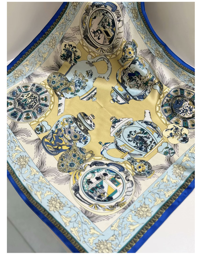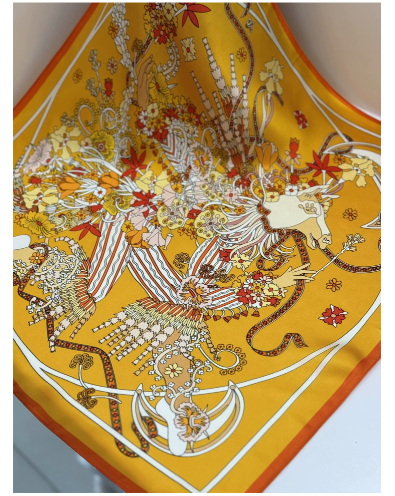 여성용 실크 스카프 100% 뽕나무 실크 53 실크 작은 사각형 스카프 유럽과 미국의 인쇄 문학 스카프 봄과 여름 바캉스용 바인딩 스카프