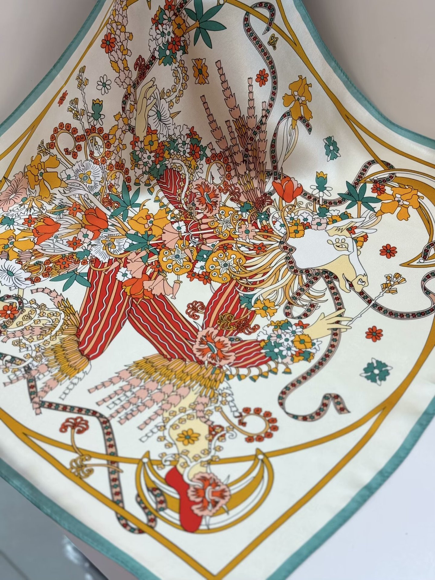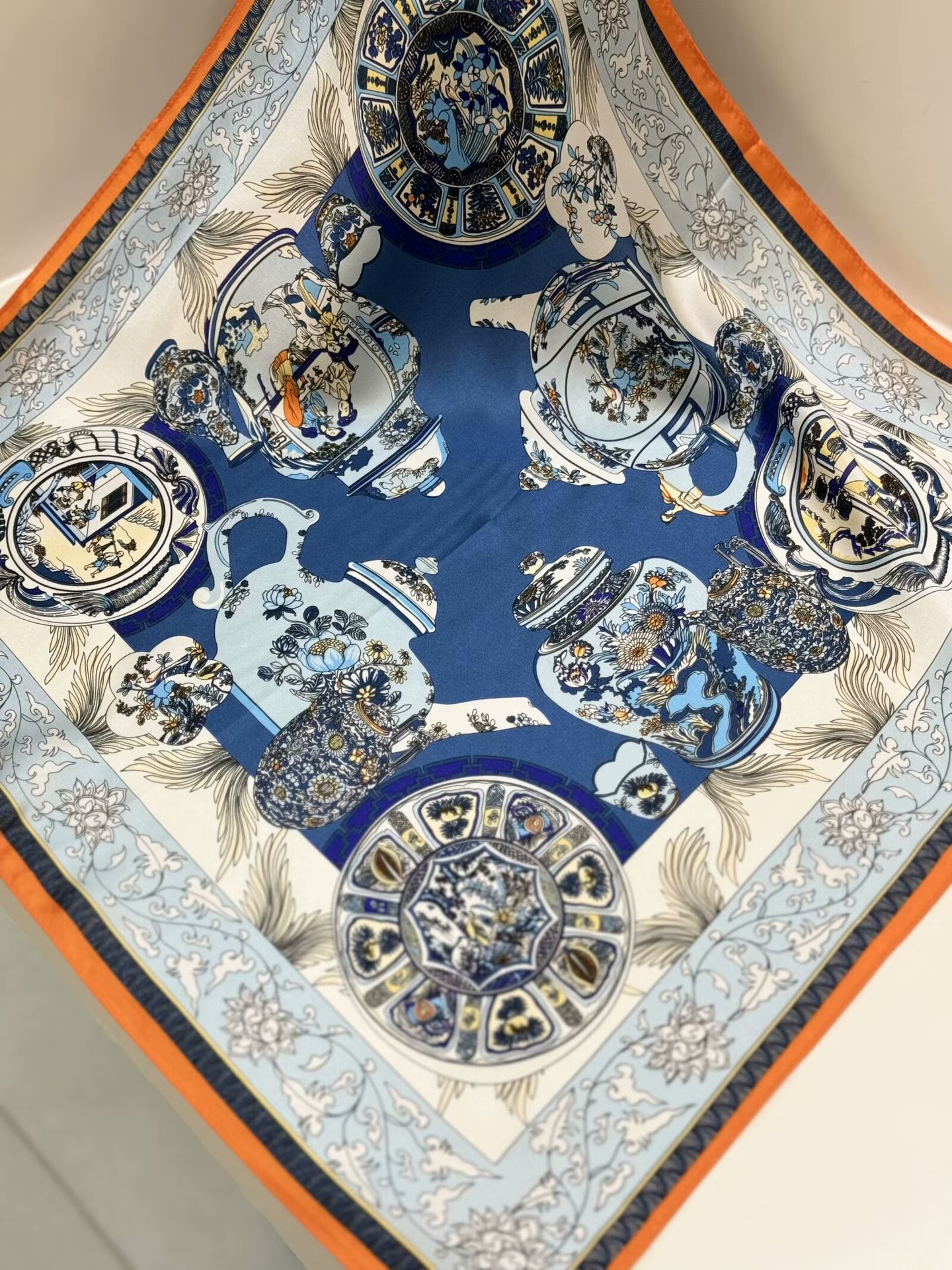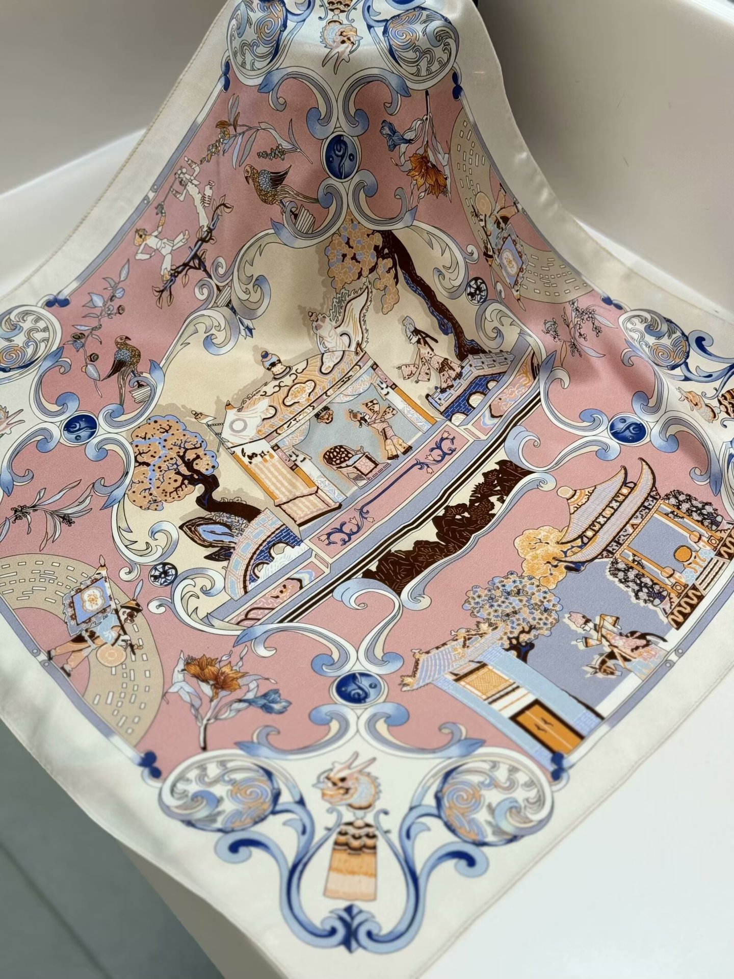 여성용 실크 스카프 100% 뽕나무 실크 53 실크 작은 사각형 스카프 유럽과 미국의 인쇄 문학 스카프 봄과 여름 바캉스용 바인딩 스카프