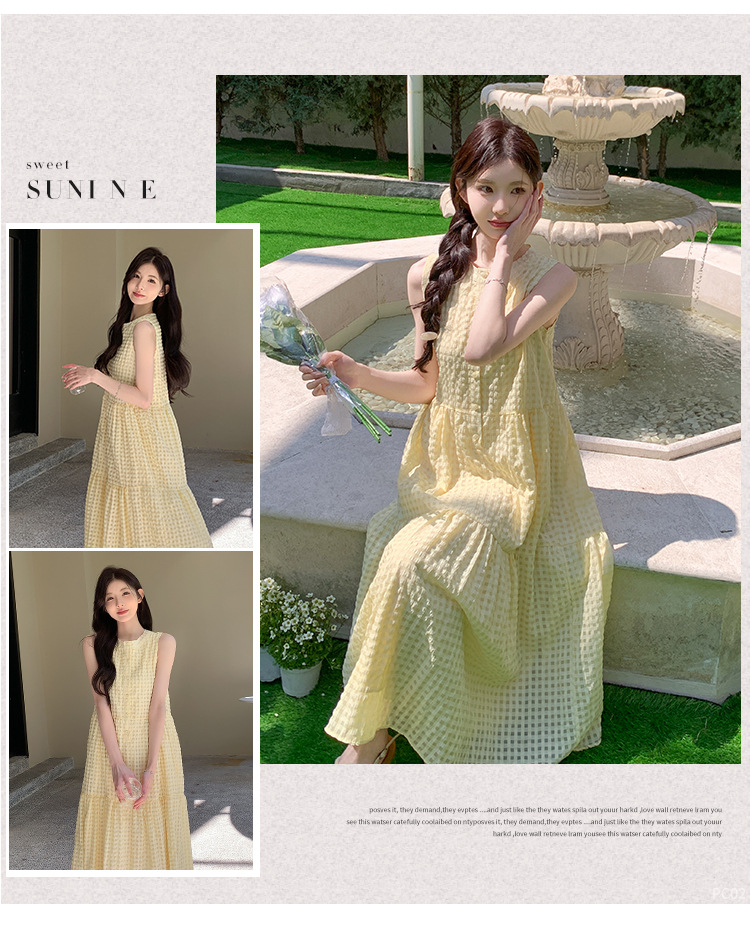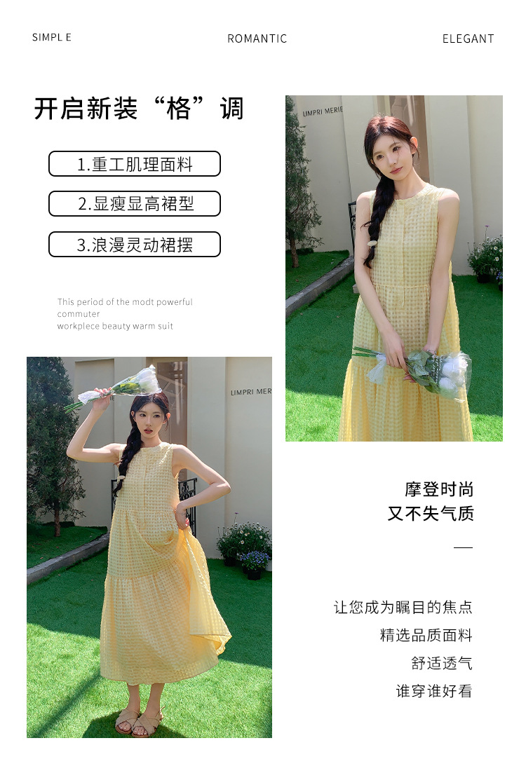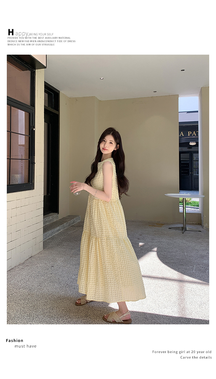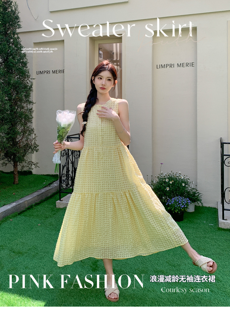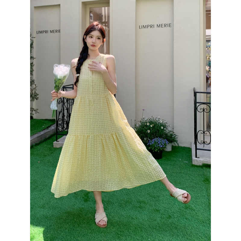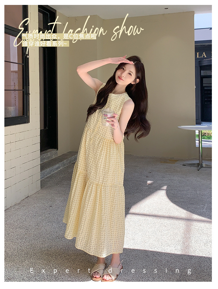 진짜 샷 달콤한 나이 감소 첫사랑 소녀 민소매 긴 치마 2025 여름 새로운 달콤한 격자 무늬 원피스 여성스토어 가기