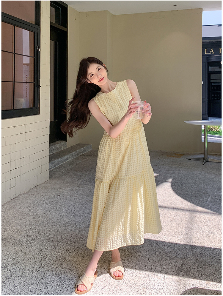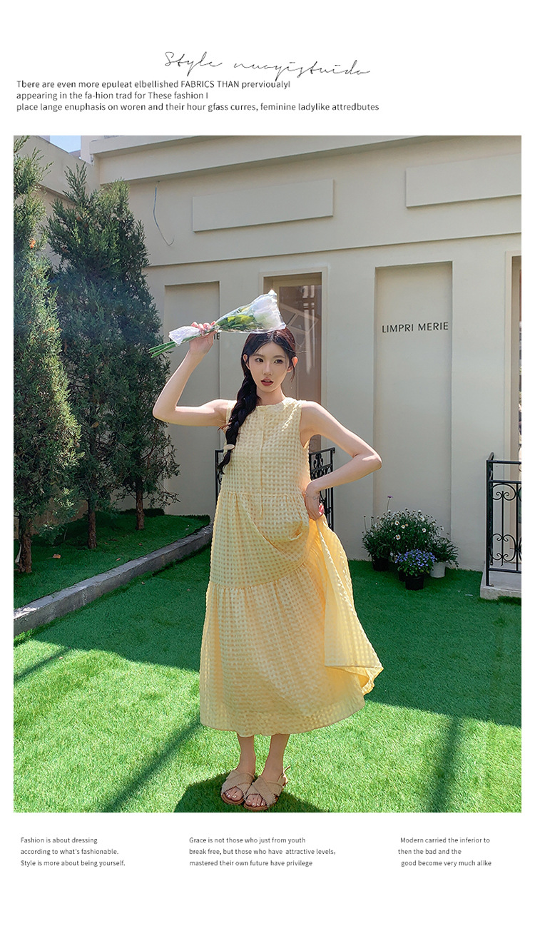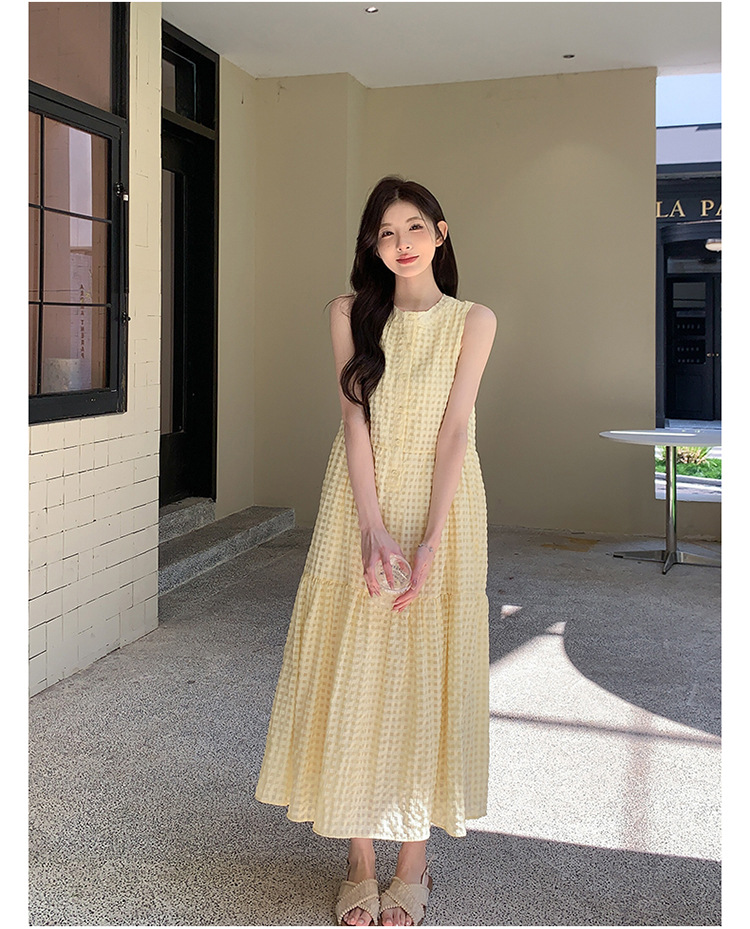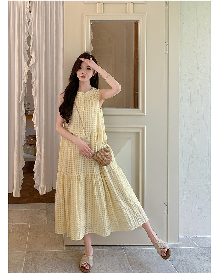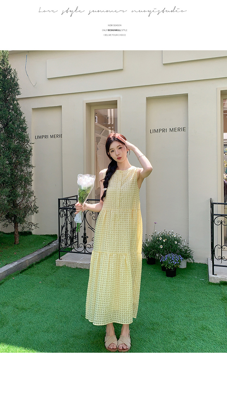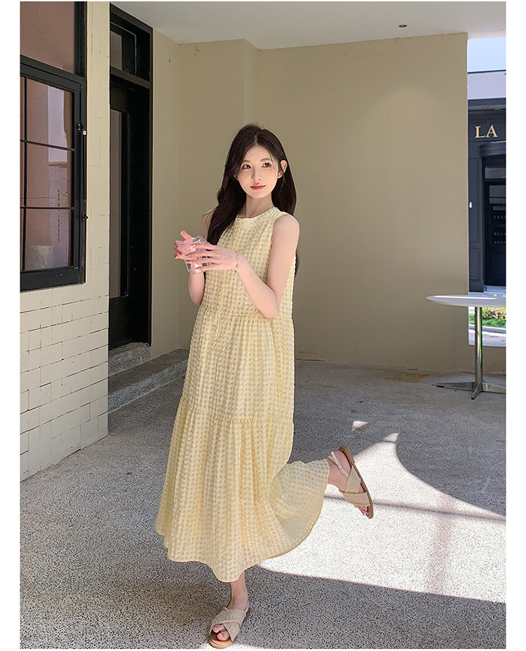 진짜 샷 달콤한 나이 감소 첫사랑 소녀 민소매 긴 치마 2025 여름 새로운 달콤한 격자 무늬 원피스 여성스토어 가기