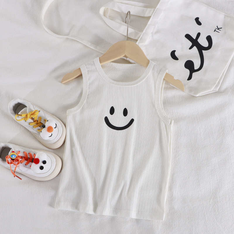 어린이 조끼 2025 새로운 소년 여름 패션 조끼 소녀 카미솔 아기 아이스 실크 탑스토어 가기