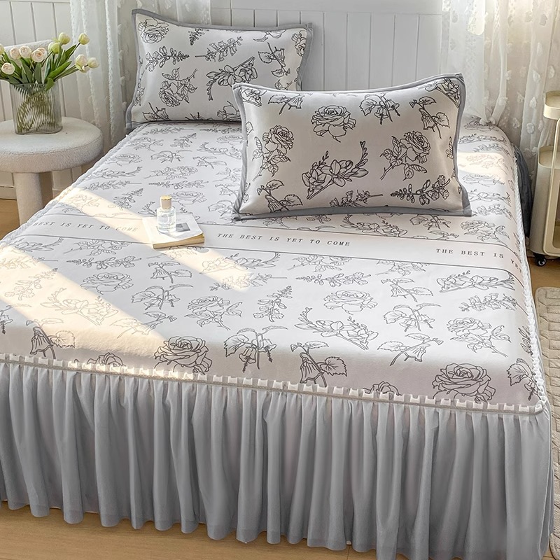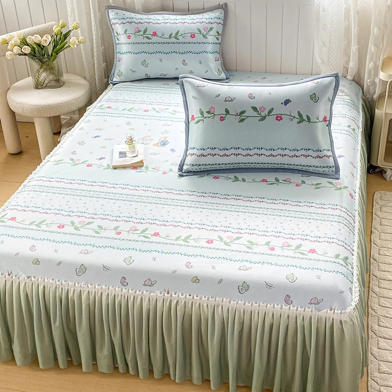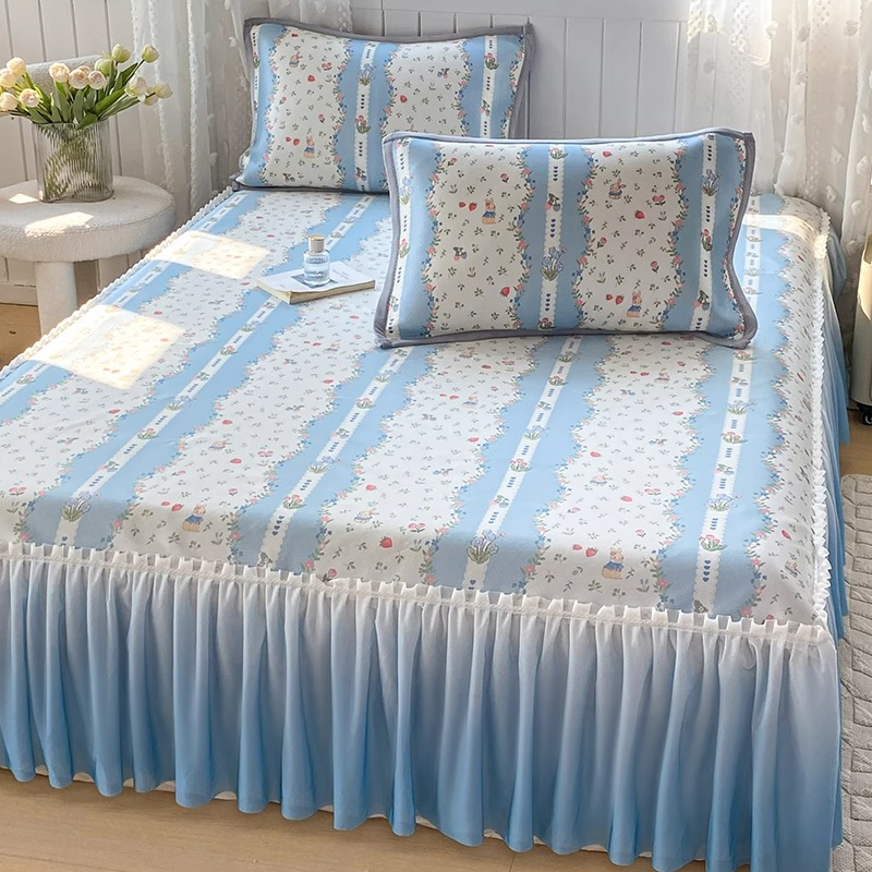 클래스 A 침대 치마 탄소 라이트 매트 3 피스 세트 여름 아이스 실크 매트 레이스 침대보 공주 에어컨 소프트 매트 침대 커버