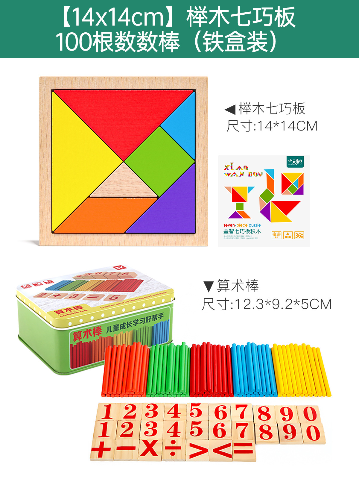 • 【14x14cm】너도밤나무 탱그램 + 계수 막대 100개(철 상자에 포장)