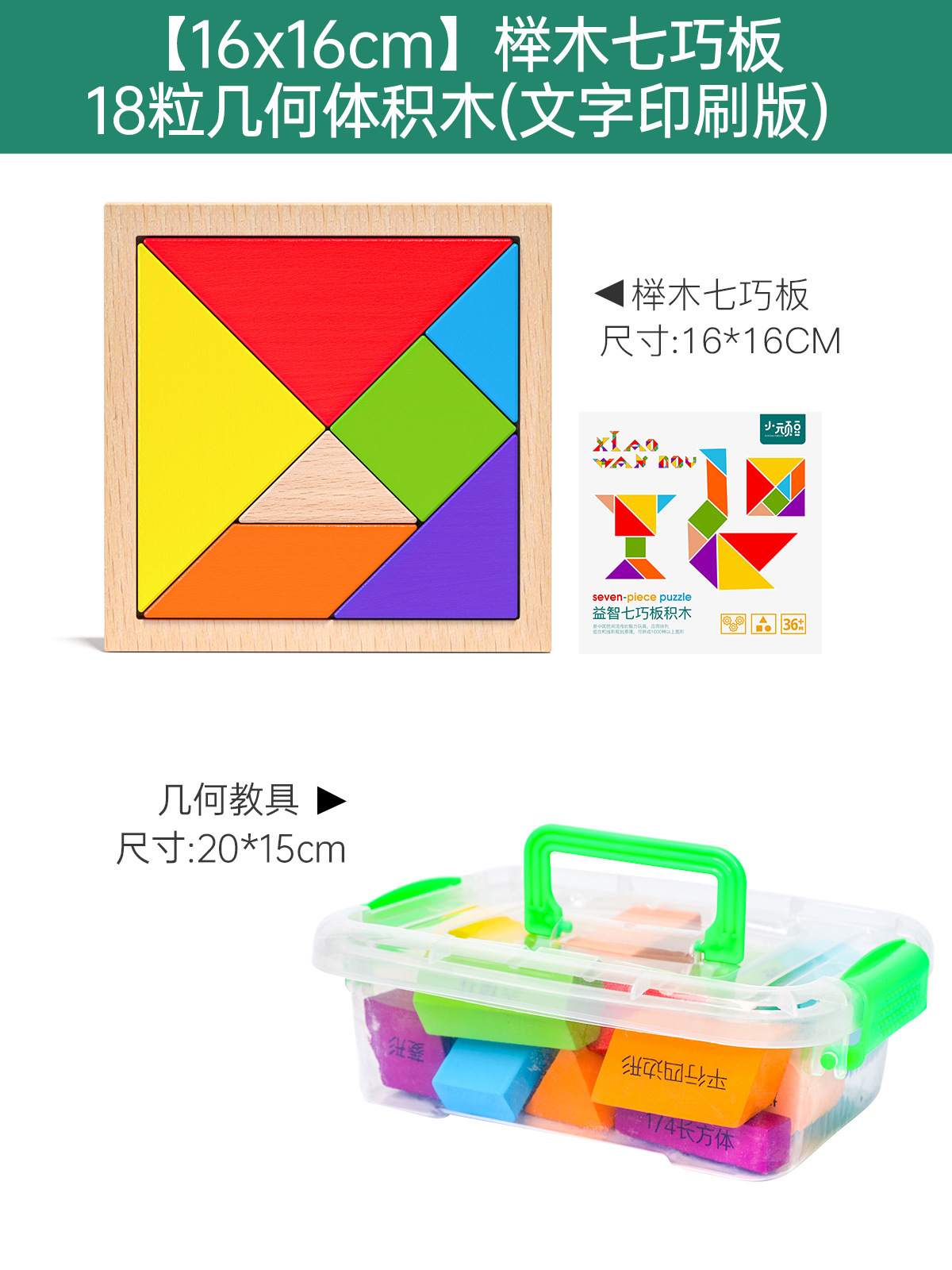 • [16x16cm] 너도밤나무 칠교놀이 + 기하학적 볼륨 나무 18개(텍스트 인쇄 버전)