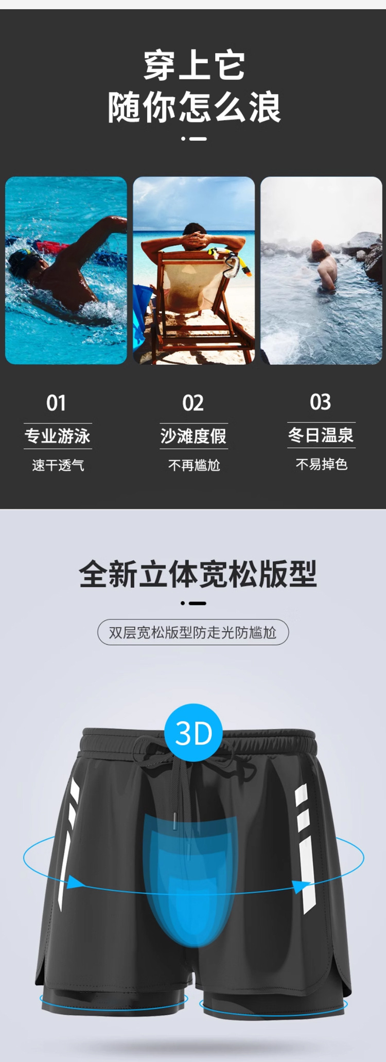 남성용 수영 팬츠, 더블 레이어 속건성, 편안한 5부 바지, 성인용 루즈한 대형 수영 및 러닝 온천 블랙 비치 팬츠스토어 가기