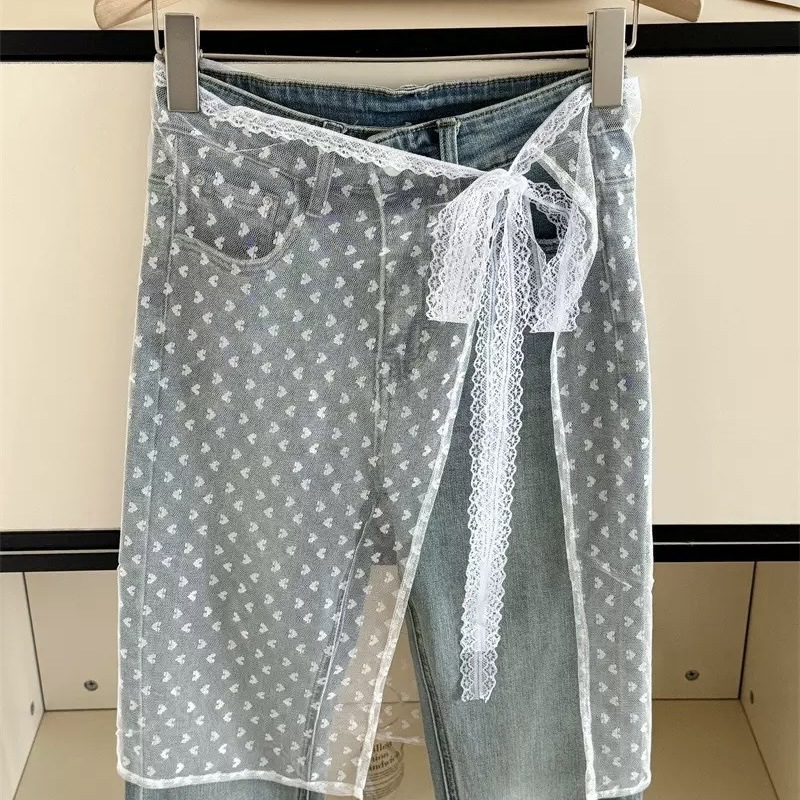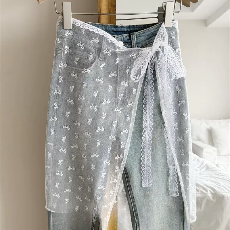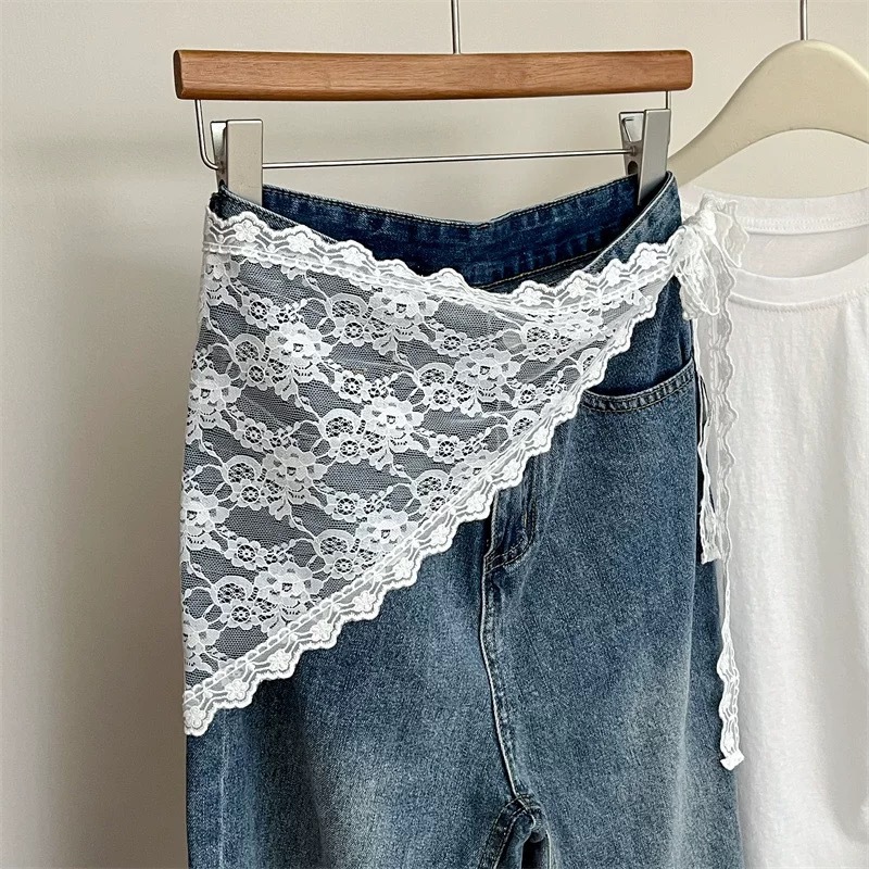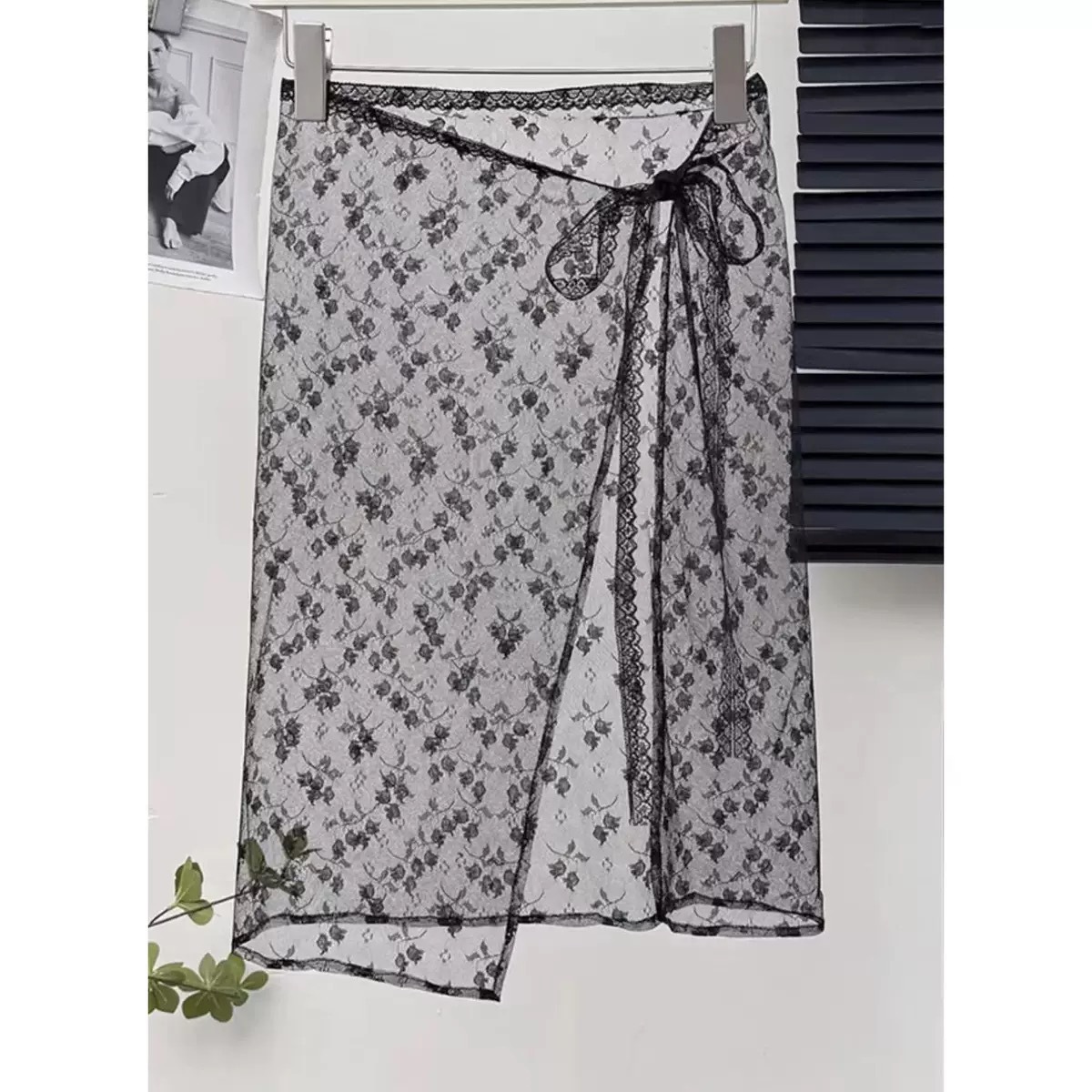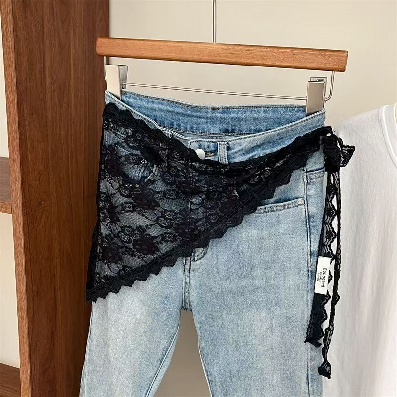 한국 스타일 디자인의 레이스 자수 레이어드 허리띠와 실크 스카프, 반길이 망사 스커트와 페티코트 액세서리스토어 가기
