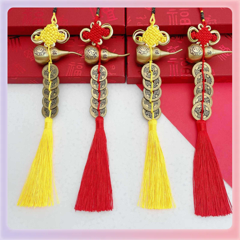 ✅ 새로운 황동 다섯 황제 돈 두꺼운 다섯 황제 돈 펜던트 순수 구리 다섯 황제 Nafu 풍수 펜던트 노란색 중국어 매듭스토어 가기