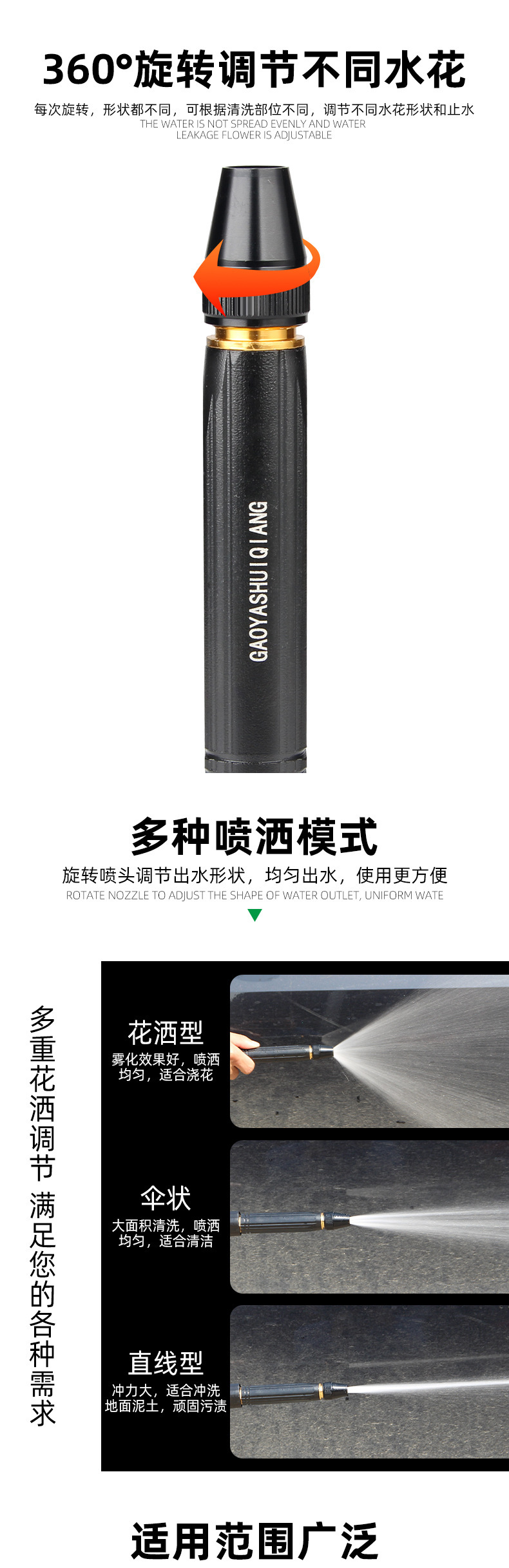 ✅ 공장 직접 판매 블랙 다이아몬드 가정용 린스 고압 노즐 수돗물 호스 부스터 세차 고압 물