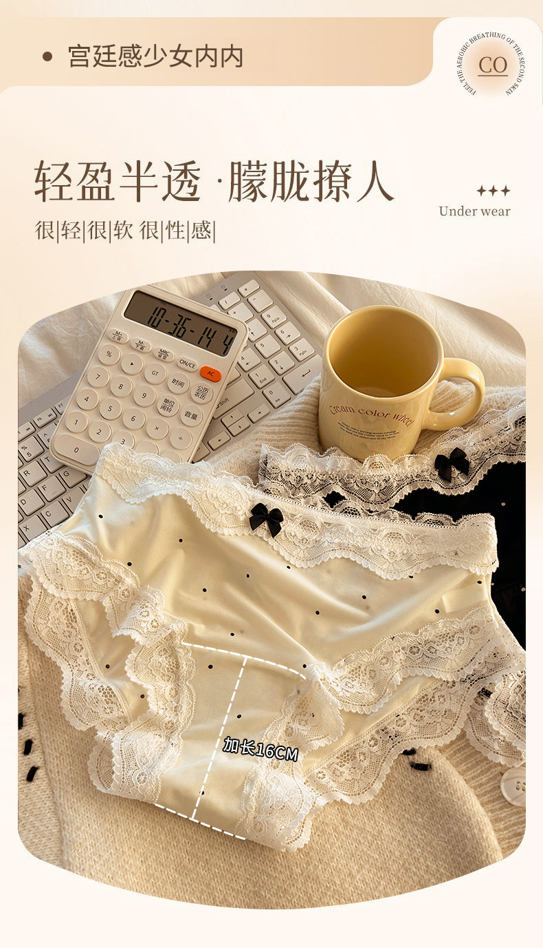 10A 프랑스 복고풍 순수 레이스 속옷 여성 초박형 아이스 실크 통기성 편안한 피부 친화적 인 플러스 사이즈 브리프