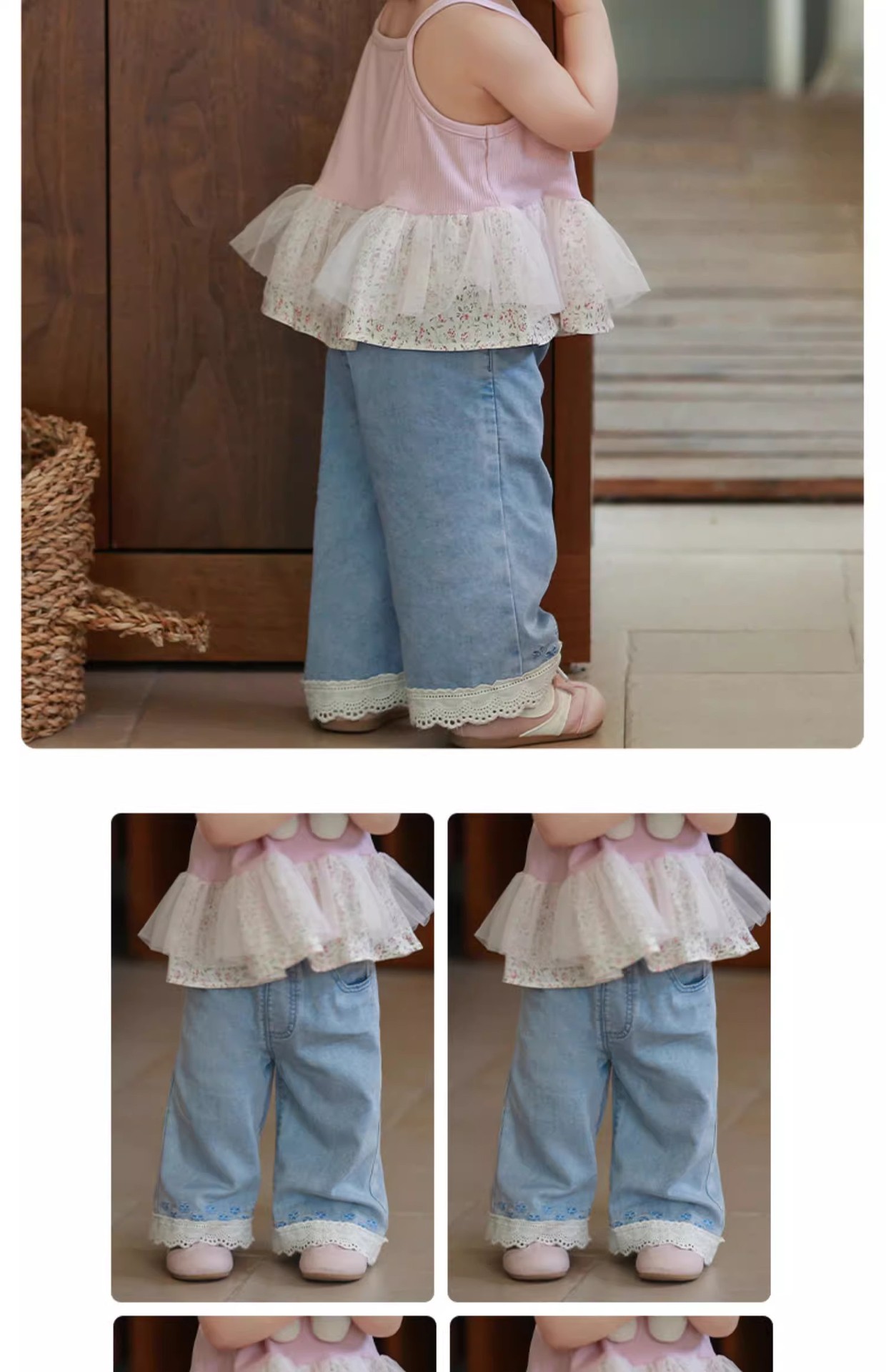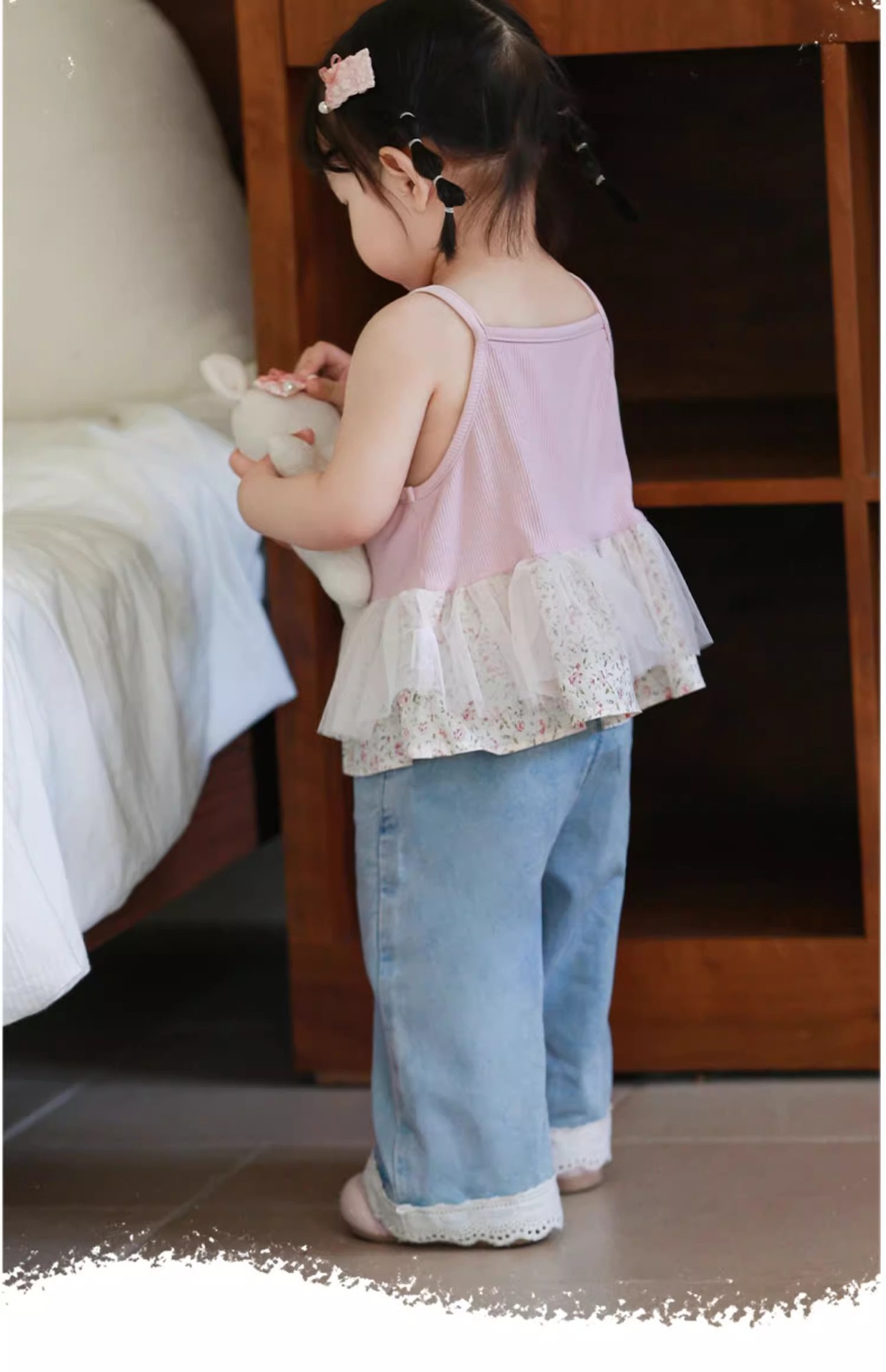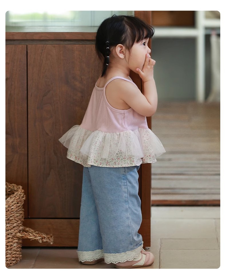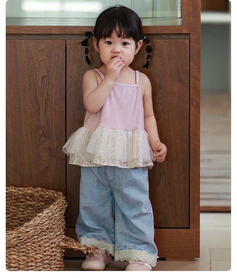 새로운 여자 아기 청바지 25 여름 한국 스타일 유아 피부 친화적 인 부드러운 통기성 레이스 데님 바지