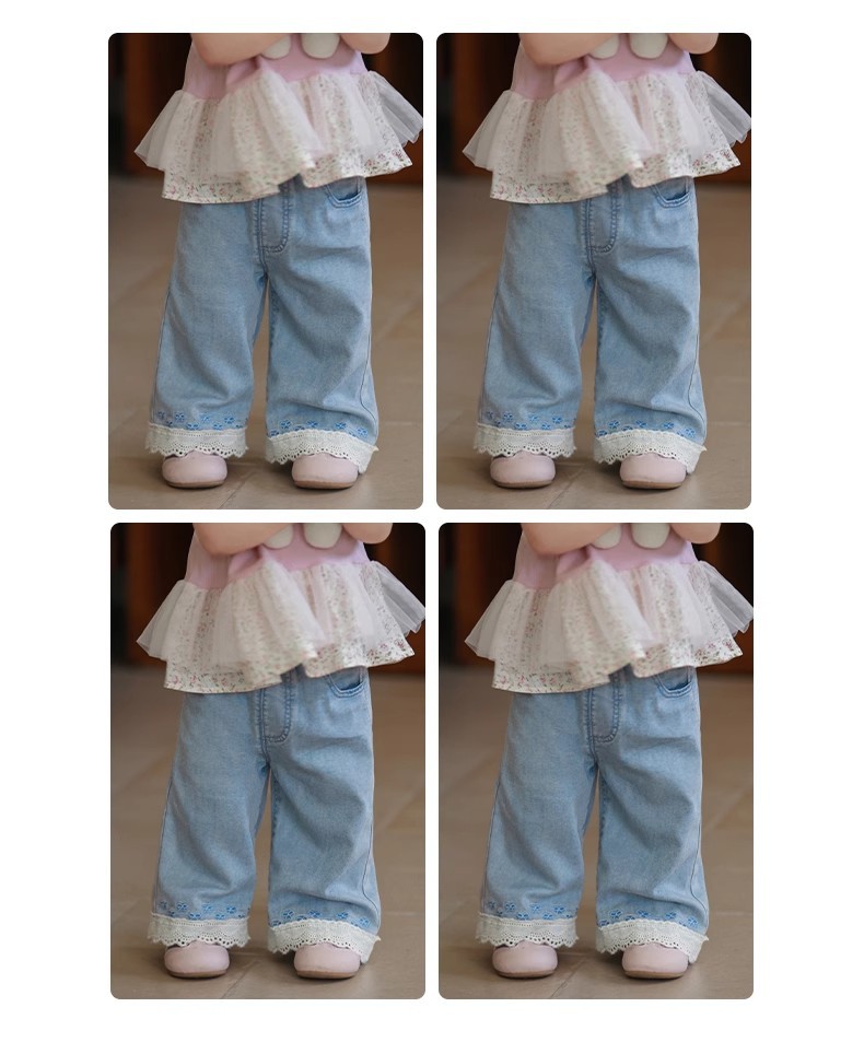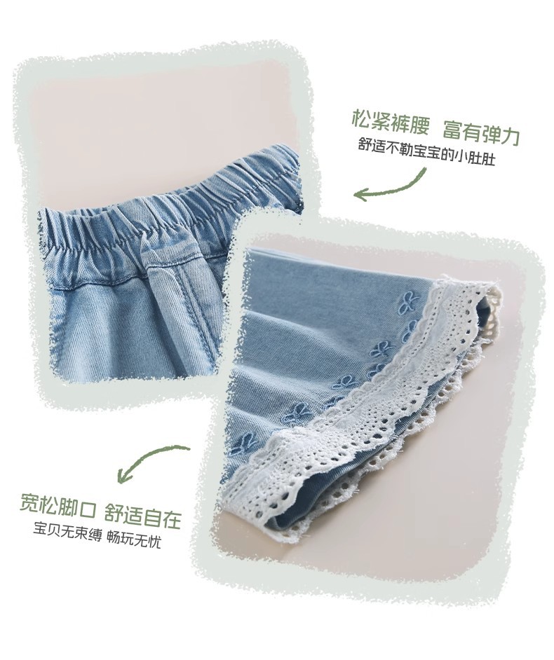 새로운 여자 아기 청바지 25 여름 한국 스타일 유아 피부 친화적 인 부드러운 통기성 레이스 데님 바지스토어 가기