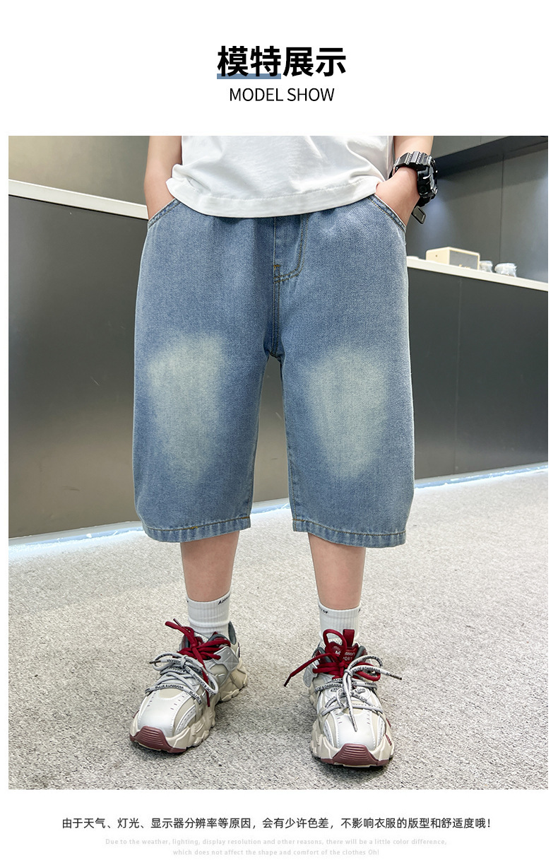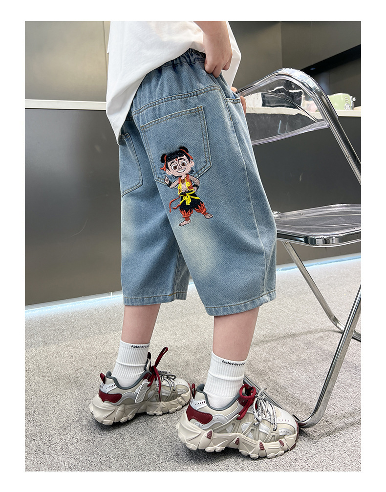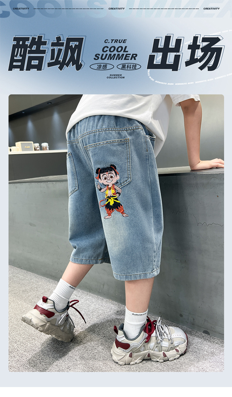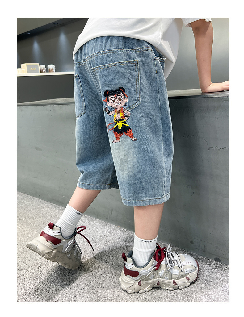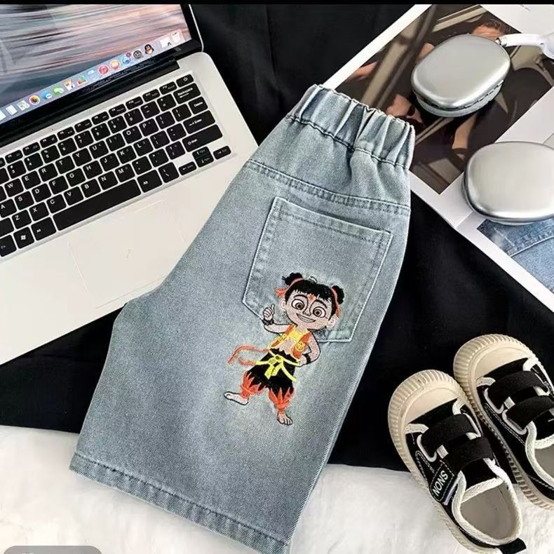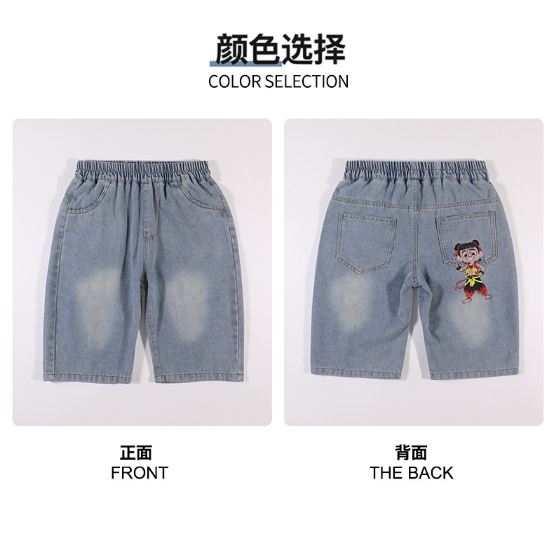 어린이 데님 반바지 여름 새 스타일 소년과 소녀 Nezha 잘 생긴 캐주얼 유행 멋진 다목적 중간 바지 7부 바지 얇은 스타일