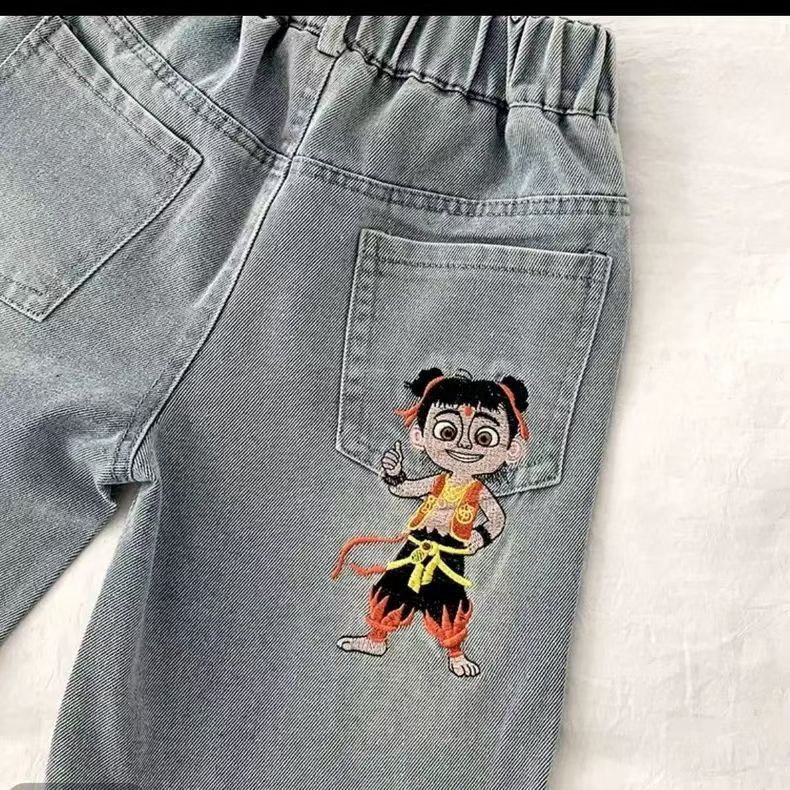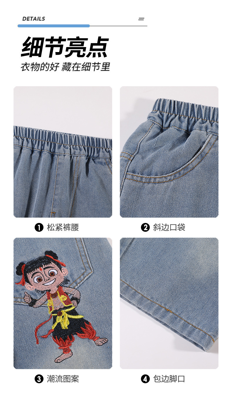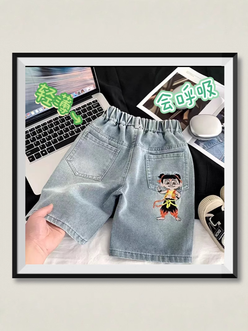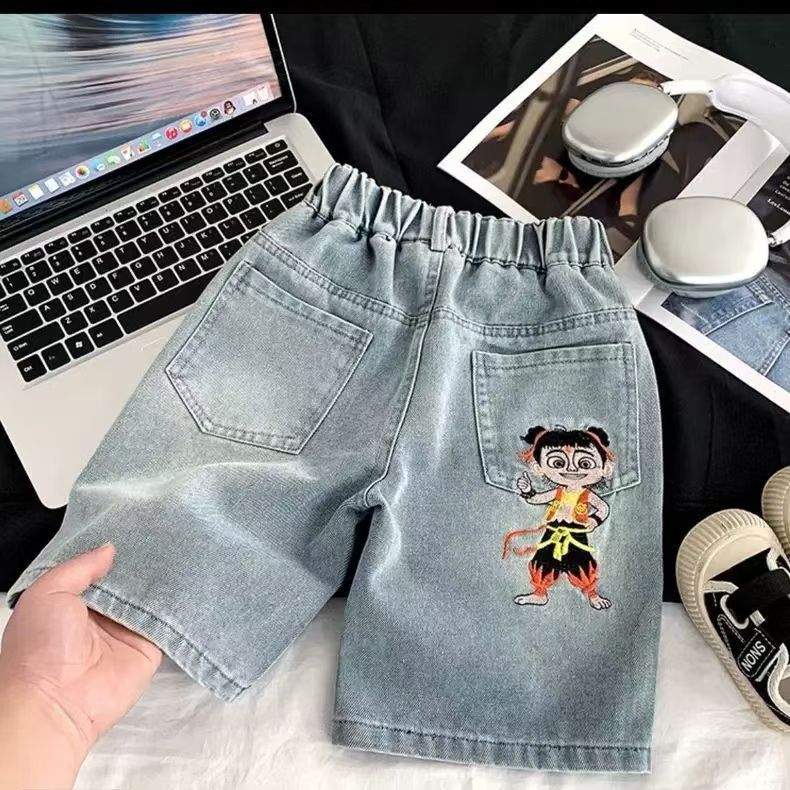 어린이 데님 반바지 여름 새 스타일 소년과 소녀 Nezha 잘 생긴 캐주얼 유행 멋진 다목적 중간 바지 7부 바지 얇은 스타일스토어 가기