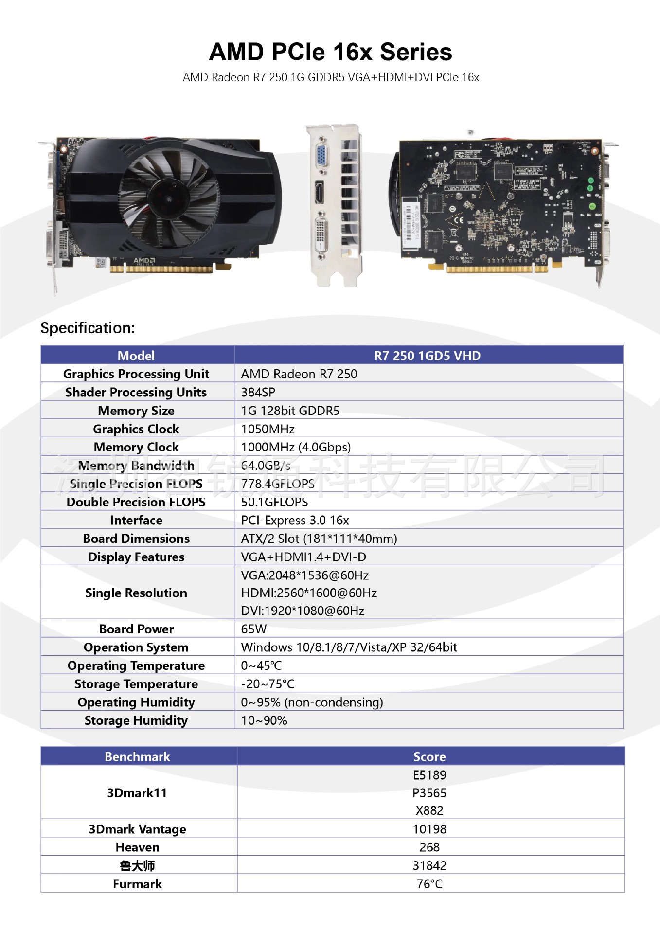Zhituitong MA19 R7 250 1G GDDR5 DVI+HDMI+VGA PCIE 16x ATX 그래픽 카드