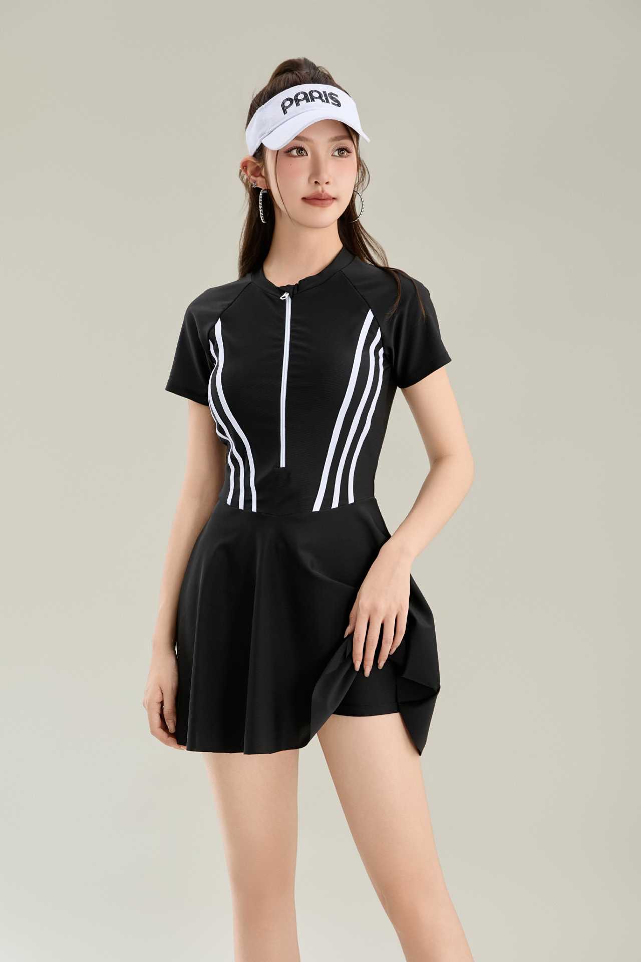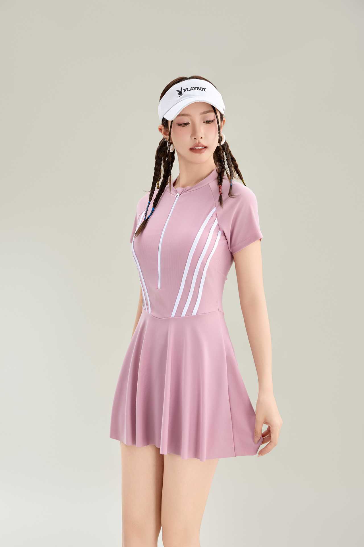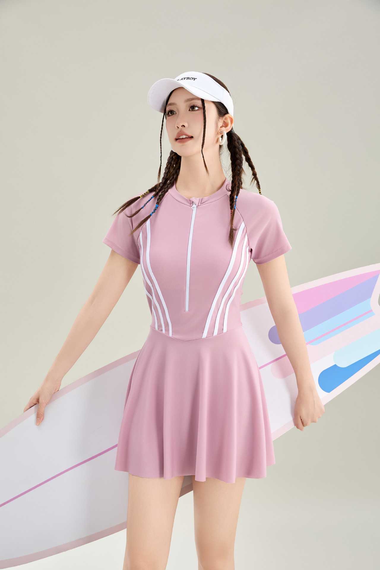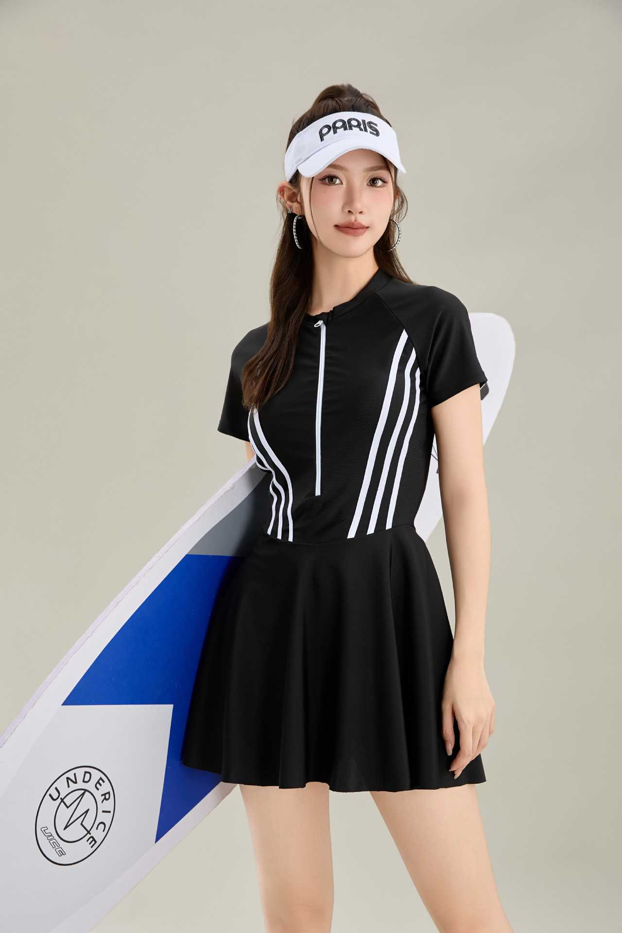 2025 새로운 수영복 여성 원피스 스커트 반팔 수영복 벨리 커버 슬리밍 학생 수영 스포츠 수영복 도매스토어 가기