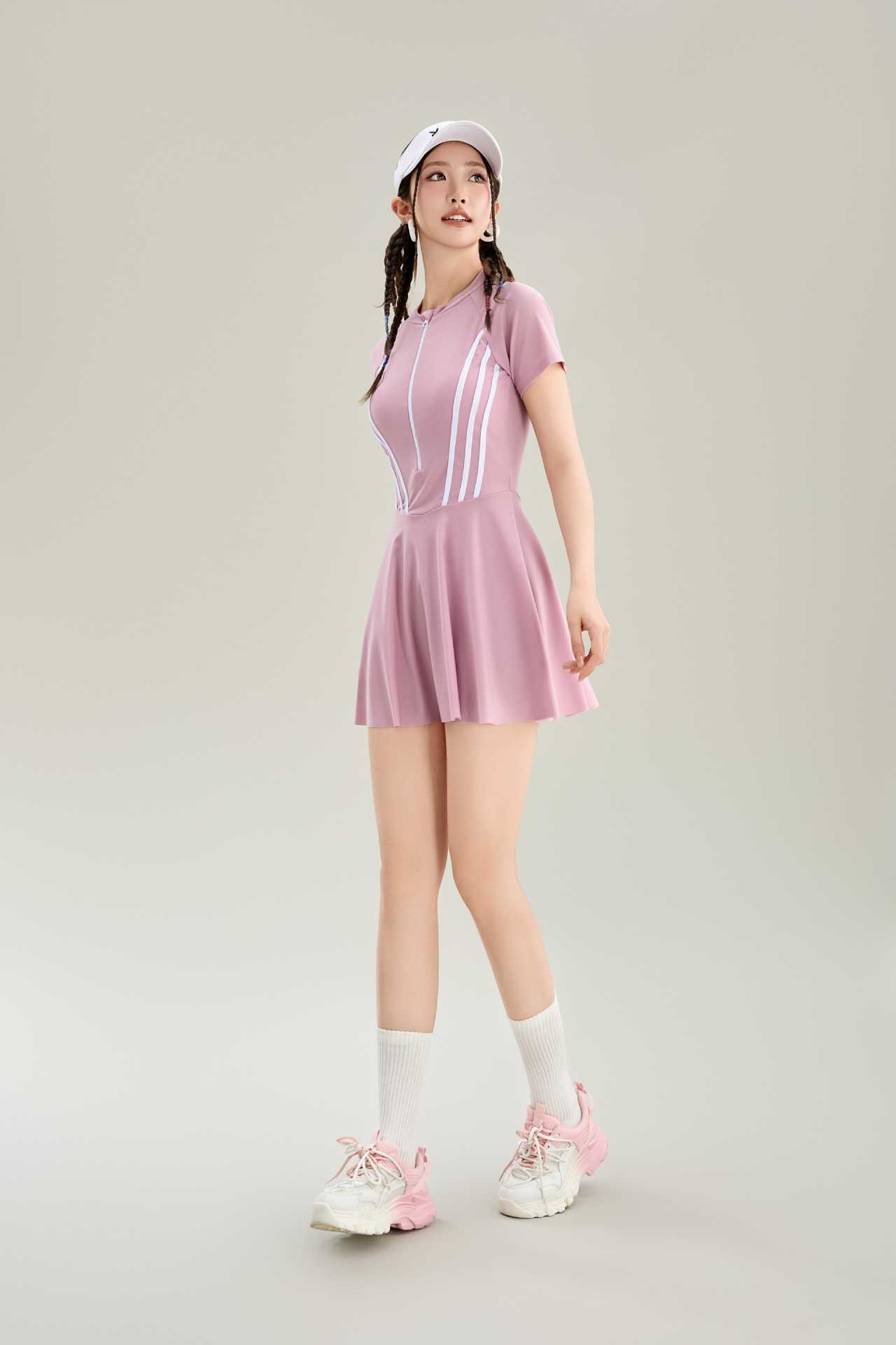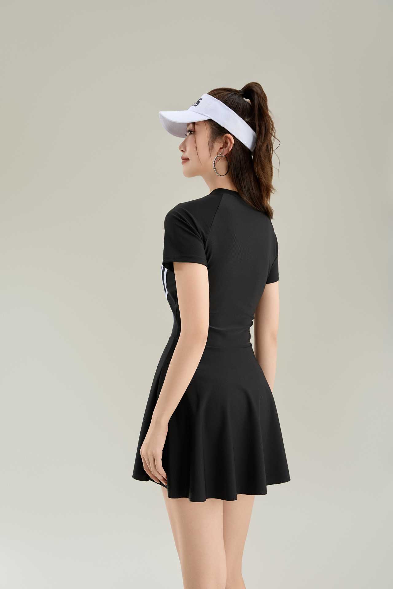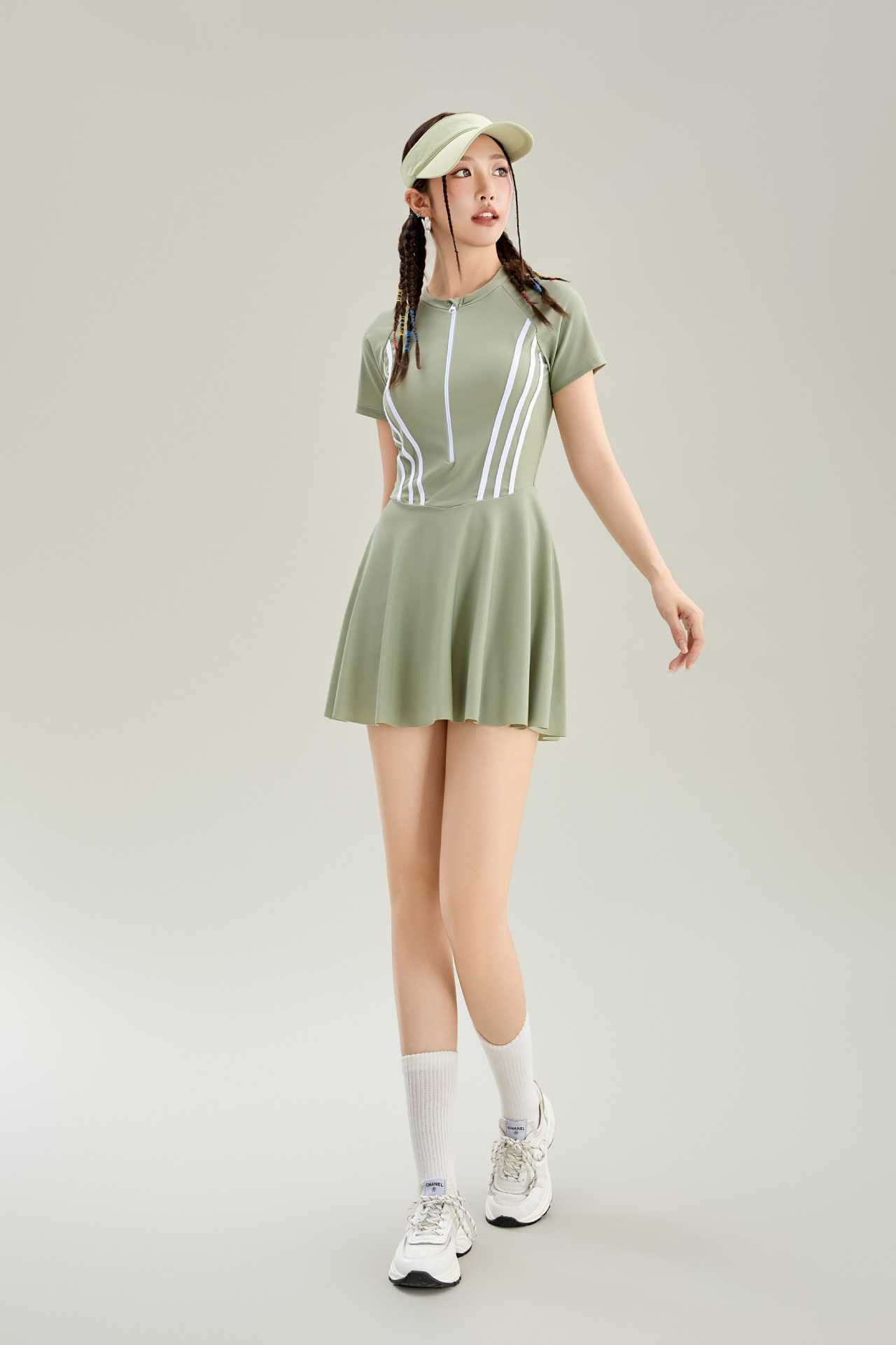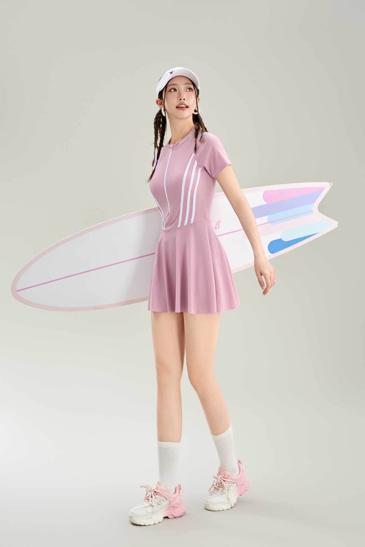 2025 새로운 수영복 여성 원피스 스커트 반팔 수영복 벨리 커버 슬리밍 학생 수영 스포츠 수영복 도매스토어 가기