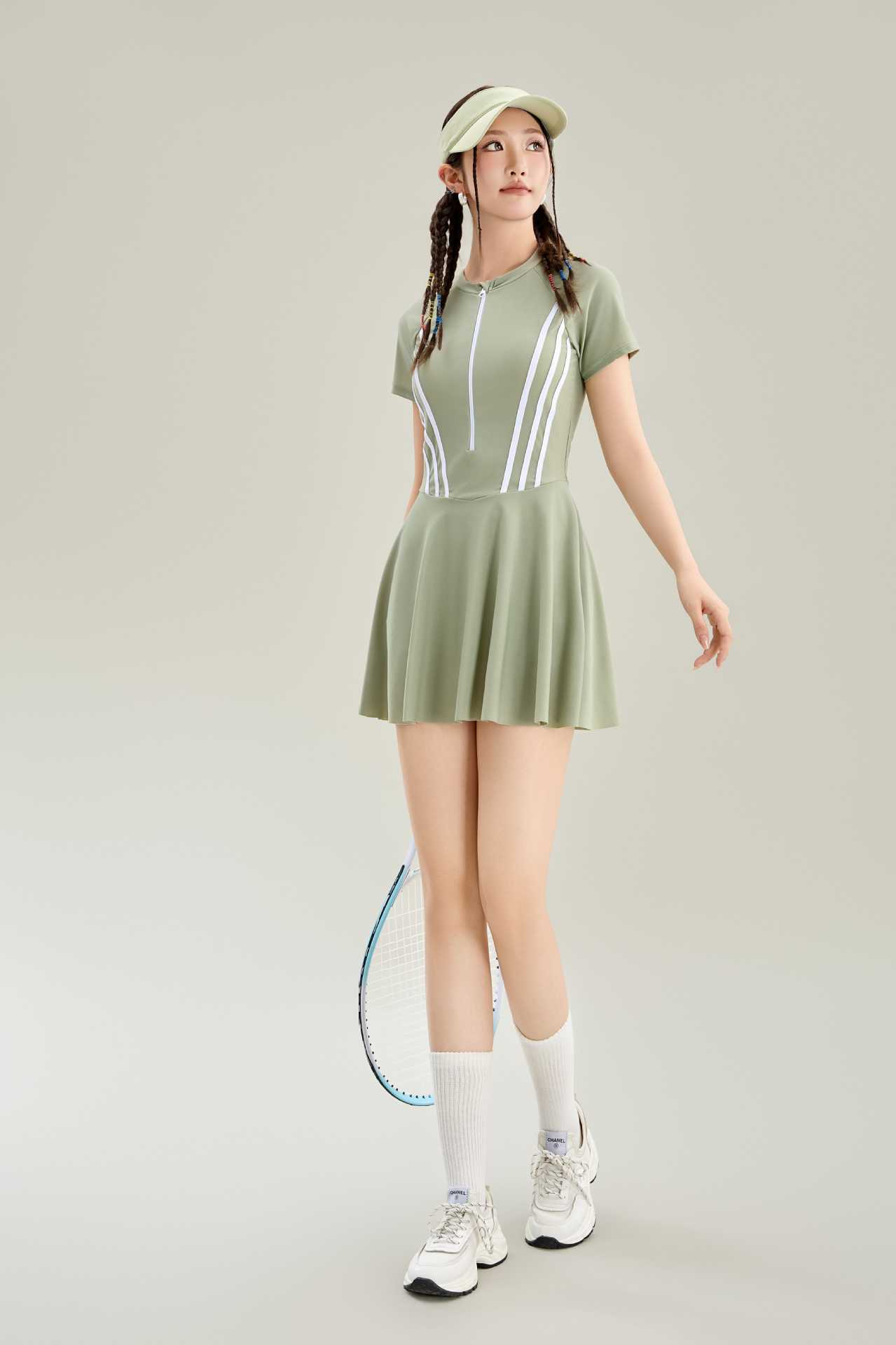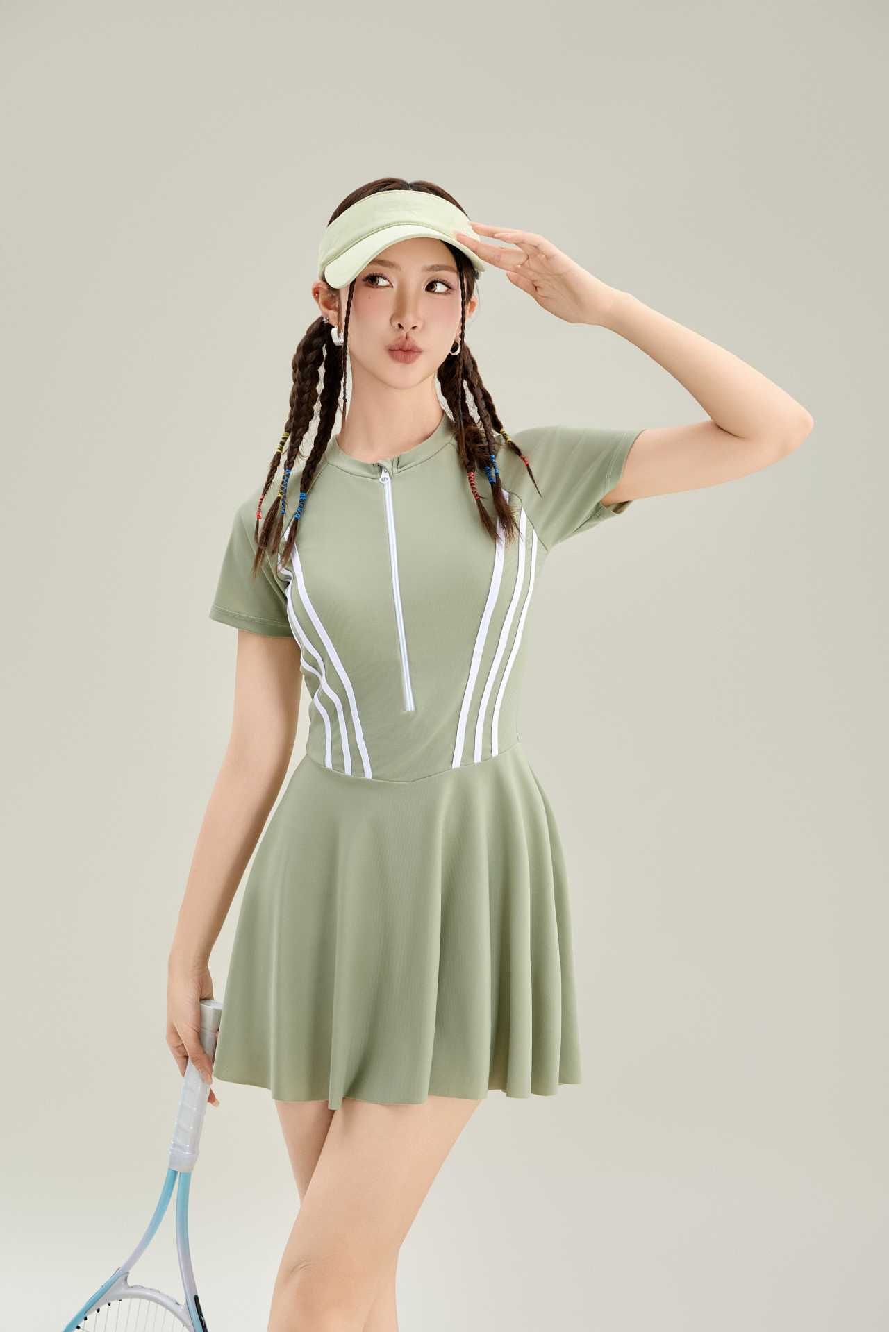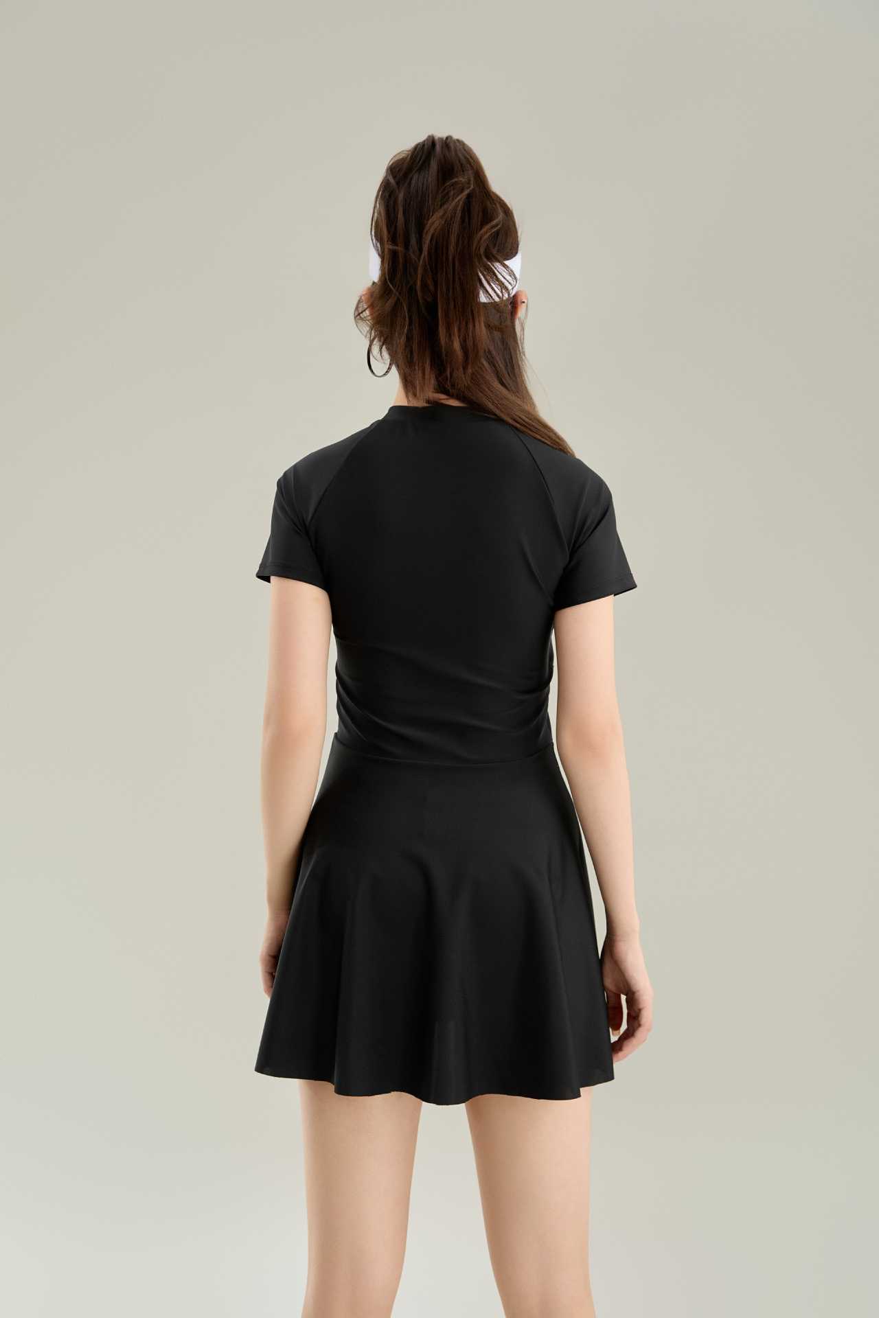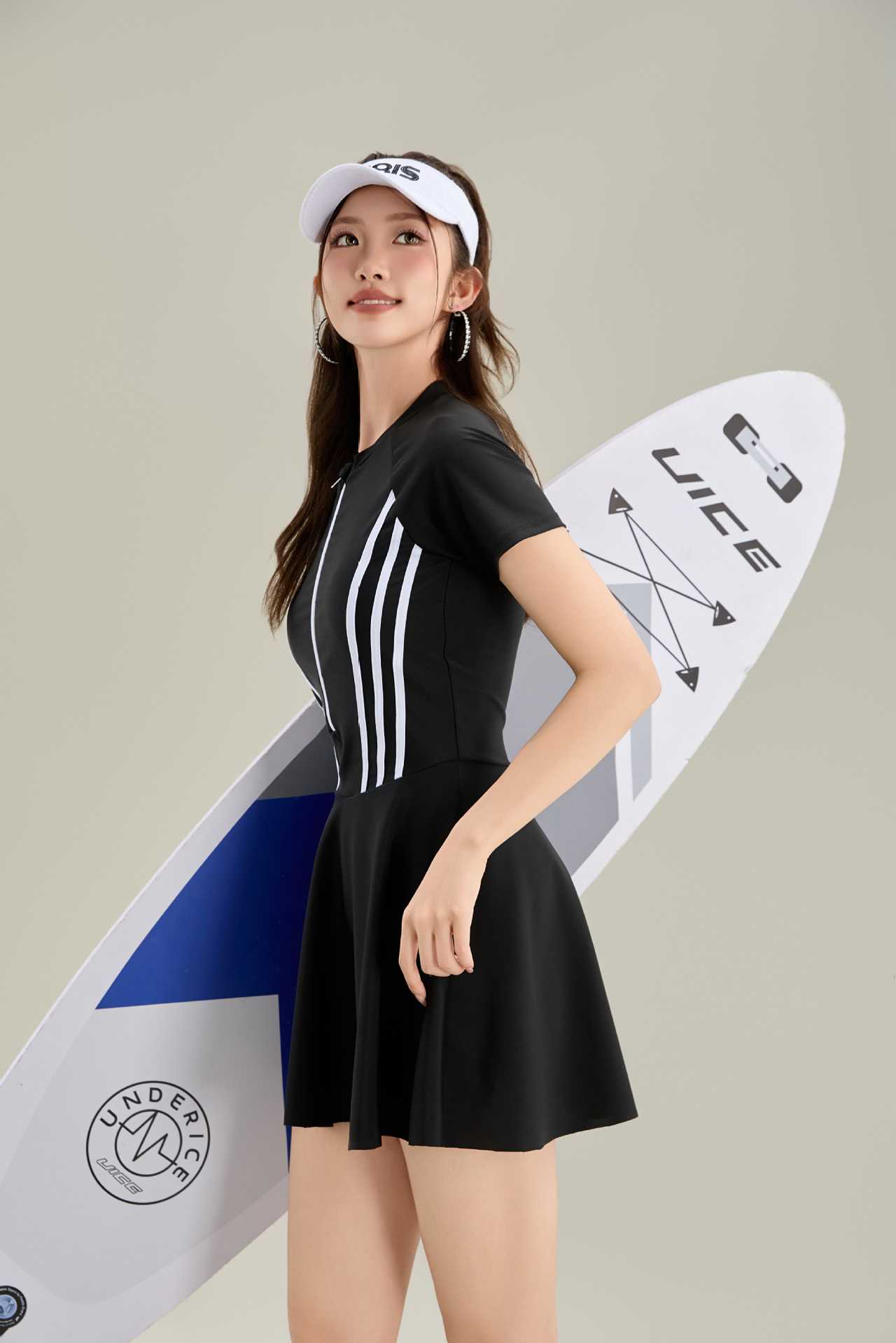 2025 새로운 수영복 여성 원피스 스커트 반팔 수영복 벨리 커버 슬리밍 학생 수영 스포츠 수영복 도매스토어 가기