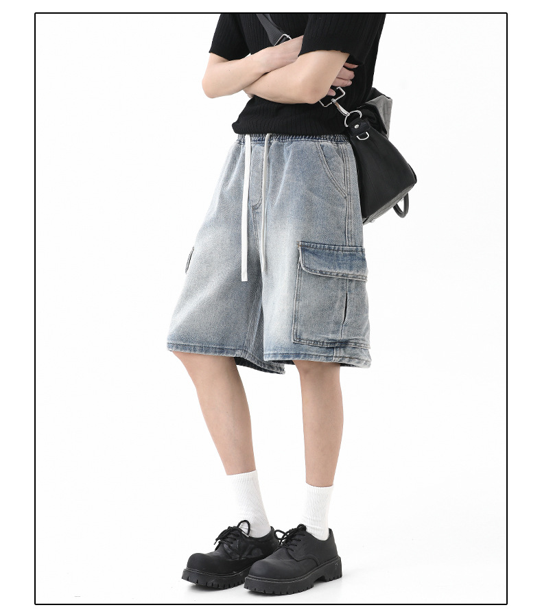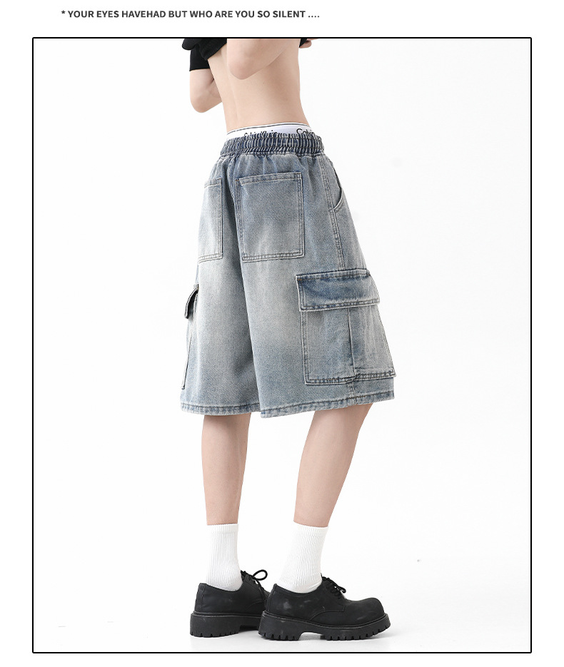 멀티 포켓 툴링 데님 반바지 남성 여름 아메리칸 스타일 하이 스트리트 루즈 스트레이트 버킷 바지 레트로 캐주얼 바지스토어 가기