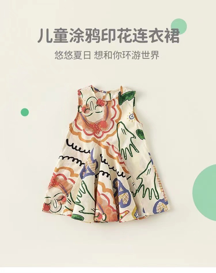 아동 의류 드레스 2025 새로운 여름 민소매 낙서 어린이 소녀 스커트 아기 소녀 면화 스커트스토어 가기