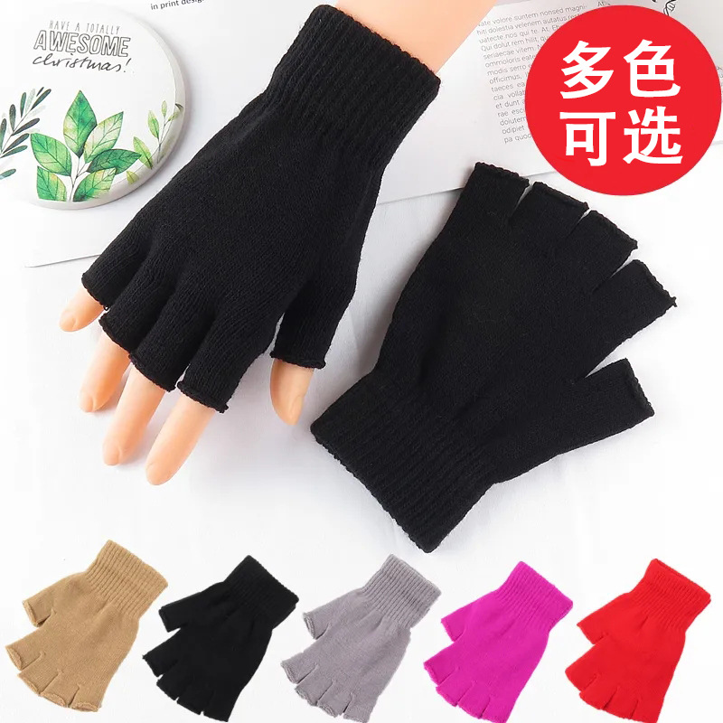 남성과 여성을 위한 가을 겨울 반손가락 마술 장갑, 차 따기용 손가락 없는 솔리드 컬러 벨벳 장갑, 사무실 필기 터치 스크린