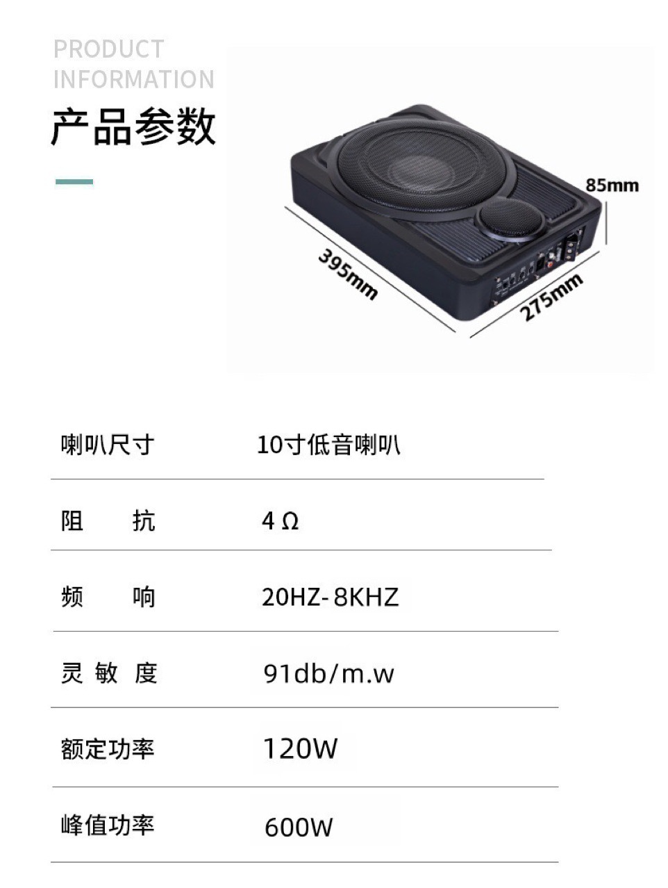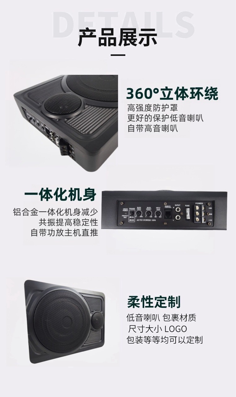 카 오디오 서브우퍼, 고음 듀얼 스피커 액티브 10inch 풀 주파수 알루미늄 합금 고출력 초박형 캐논 스피커스토어 가기