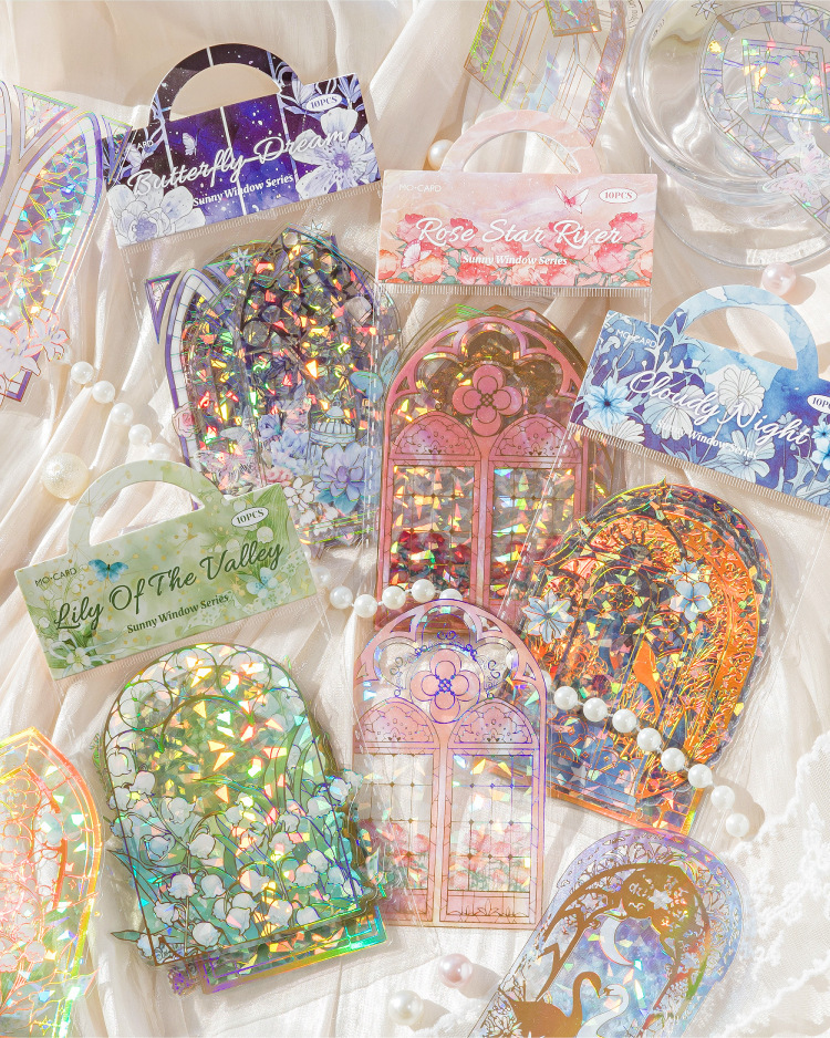 모 잉크 얼음 크리스탈 PET 스테레오 레이저 골드 스티커 패키지 클리어 라이트 창 시리즈 드림 컬러 창 손 계정 소재 스티커스토어 가기