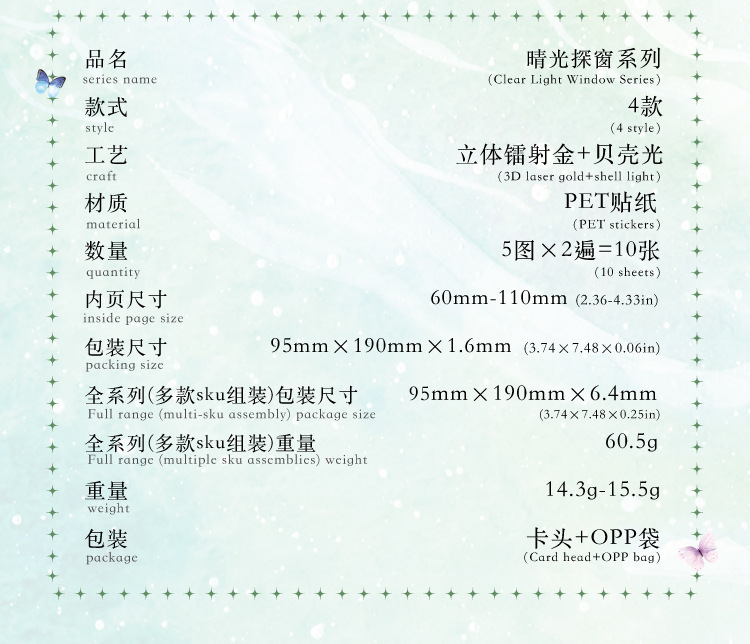 모 잉크 얼음 크리스탈 PET 스테레오 레이저 골드 스티커 패키지 클리어 라이트 창 시리즈 드림 컬러 창 손 계정 소재 스티커