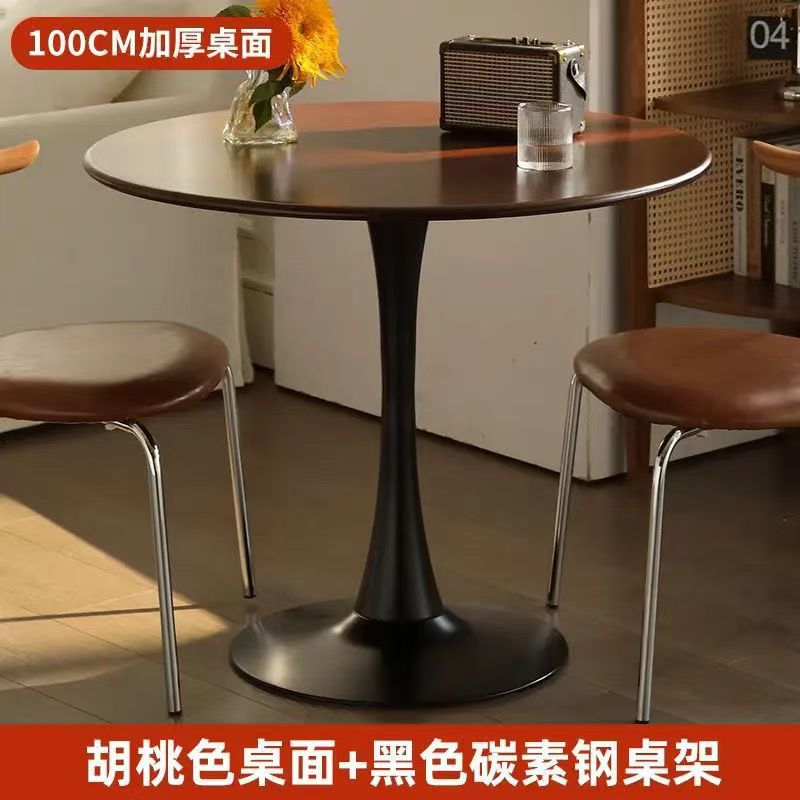 복고풍 원목 작은 원형 테이블 튤립 원형 식탁 작은 아파트 홈 발코니 커피 협상 호두 색상