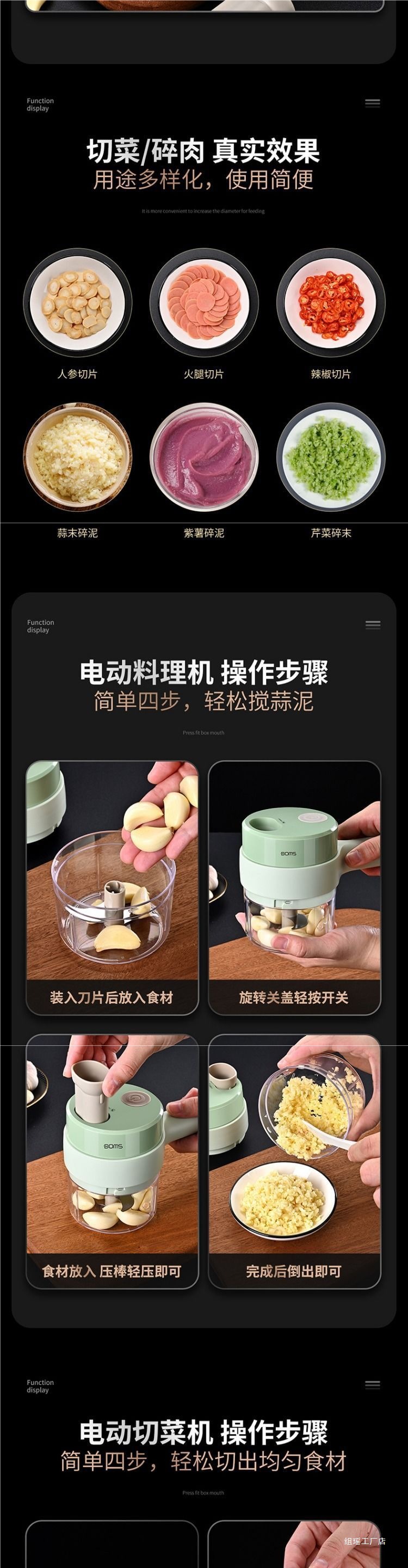 독일 작은 절단 야채 무선 전기 으깬 마늘 마늘 마셔 자동 프레스 및 당겨 마늘 볶음 이우