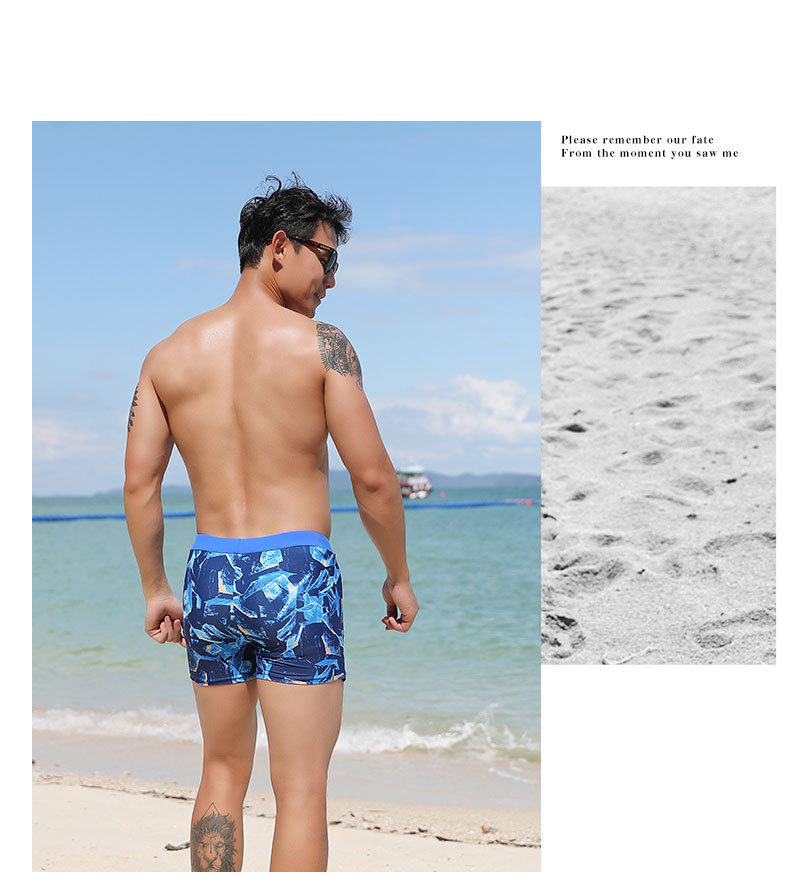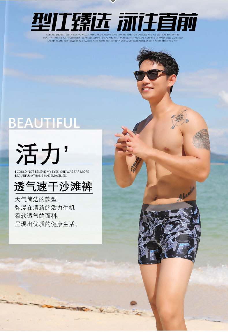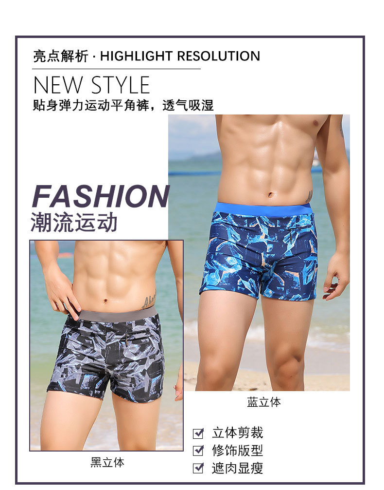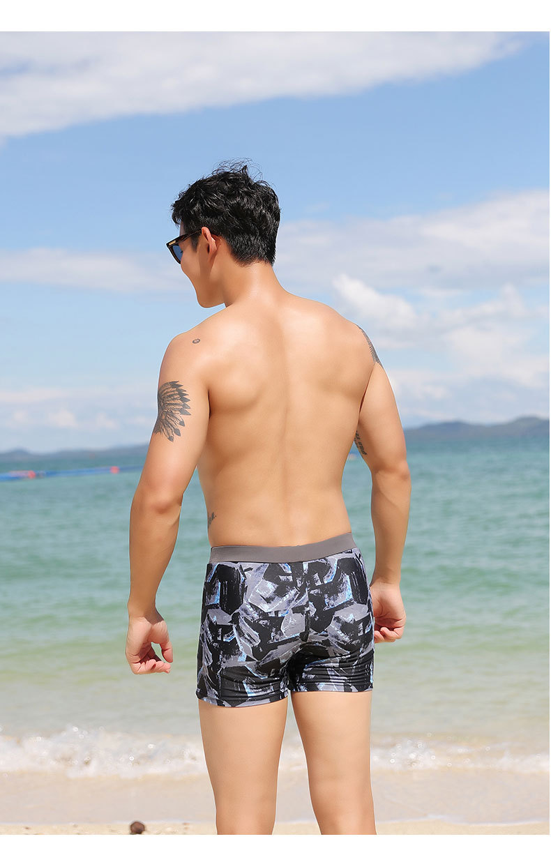남성용 수영 바지 짧은 복서 저항 없음 세련된 프린트 수영 바지 9007 신제품