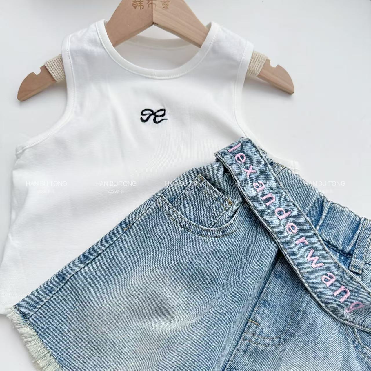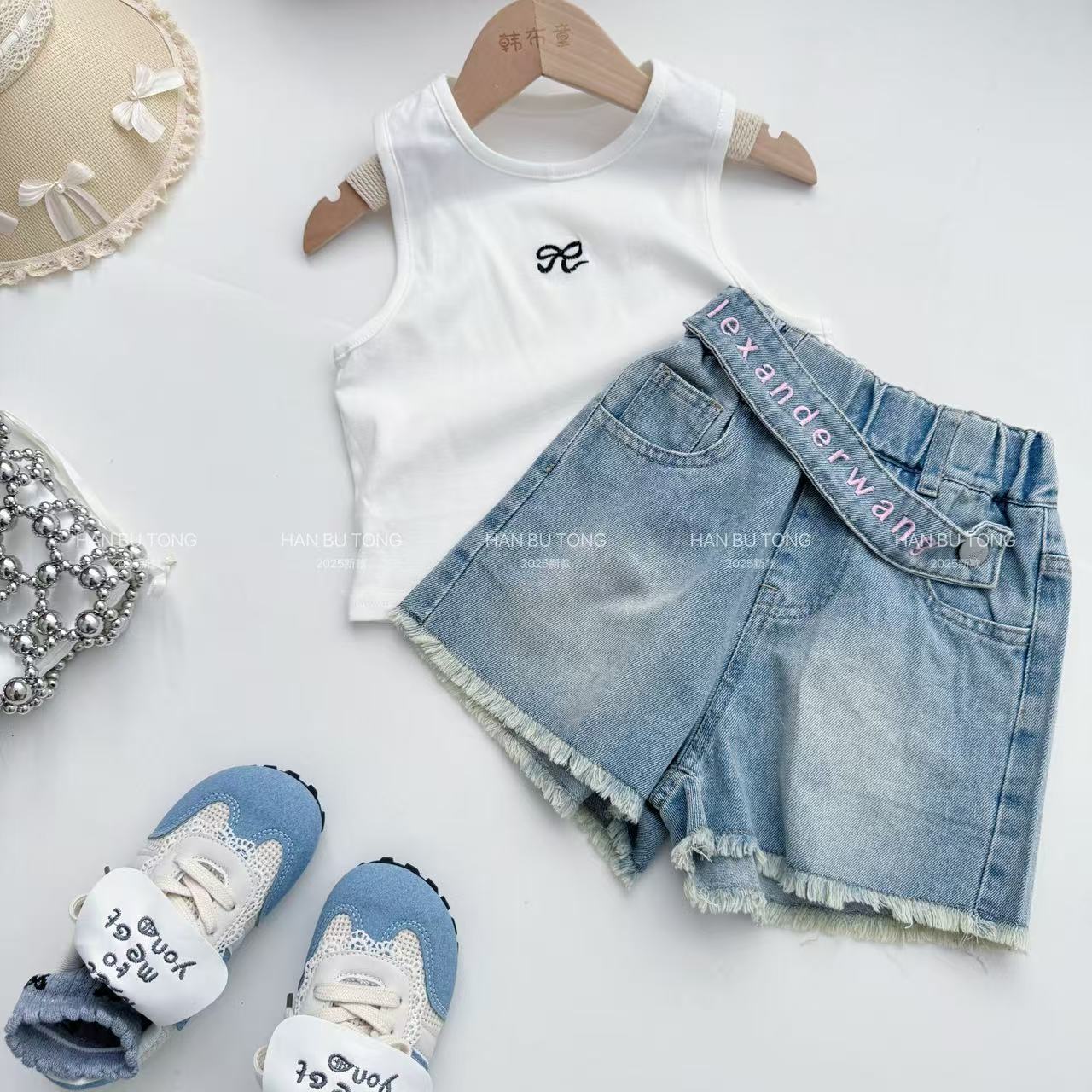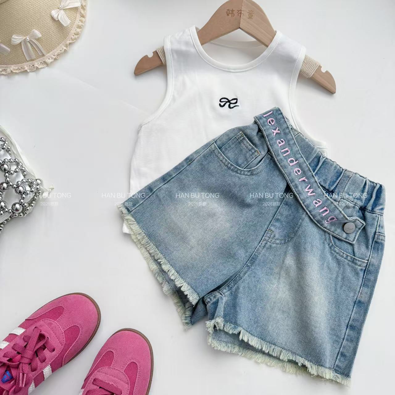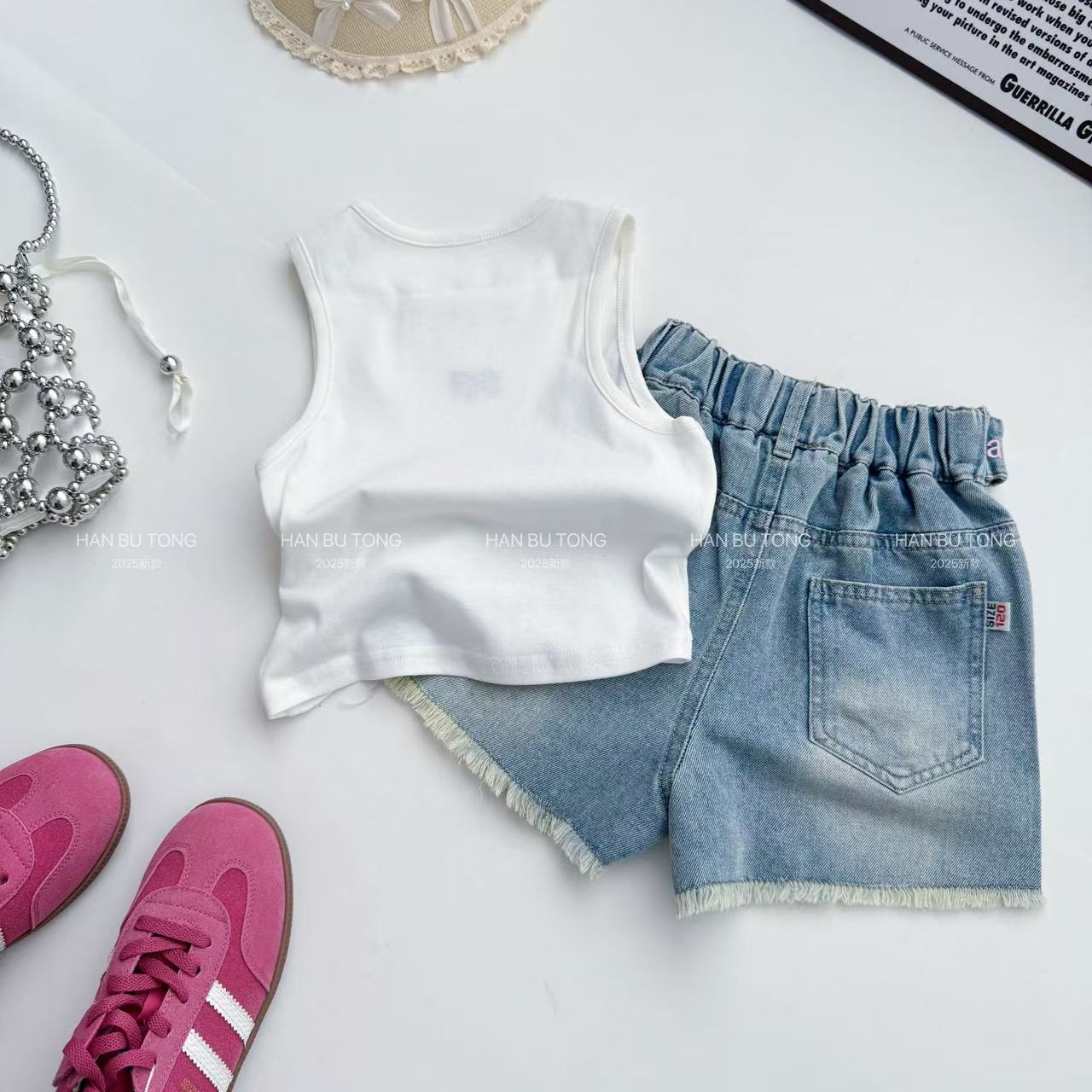 여자 2025 여름 데님 반바지 정장 어린이 디자인 반바지 바지 학생 조끼 티셔츠 운동복
