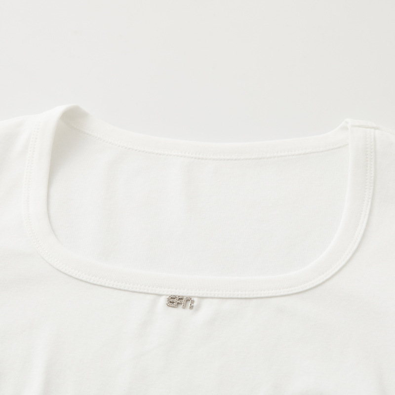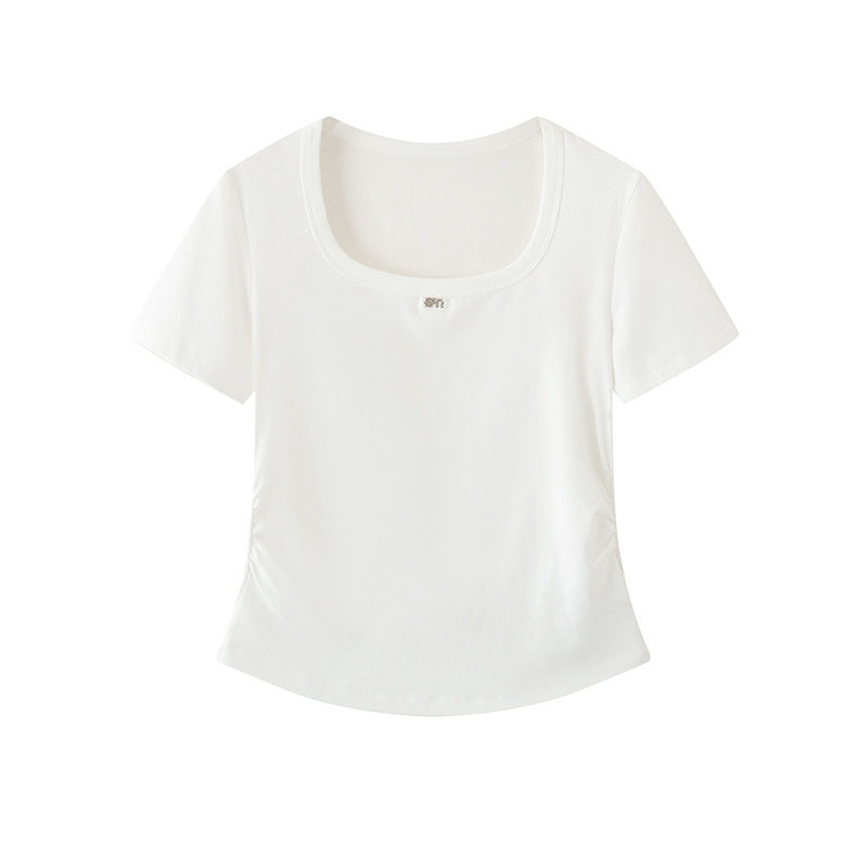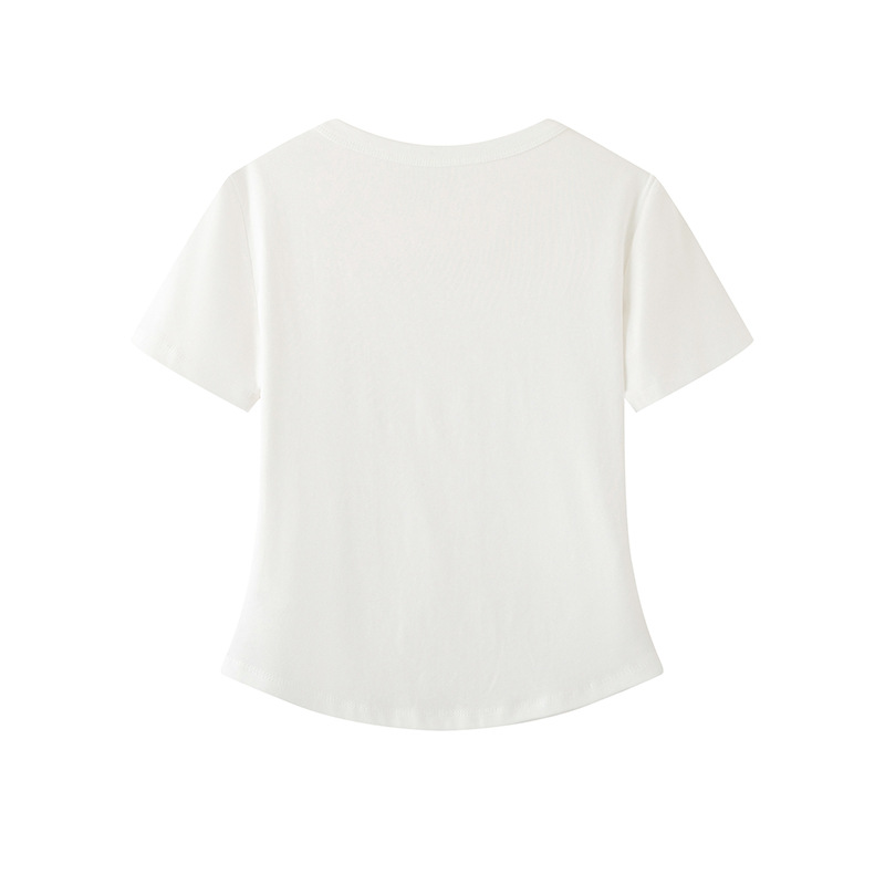 2025 여름 새로운 라운드 넥 화이트 짧은 소매 티셔츠 여성 쇼트 탑 여성 1G4300251