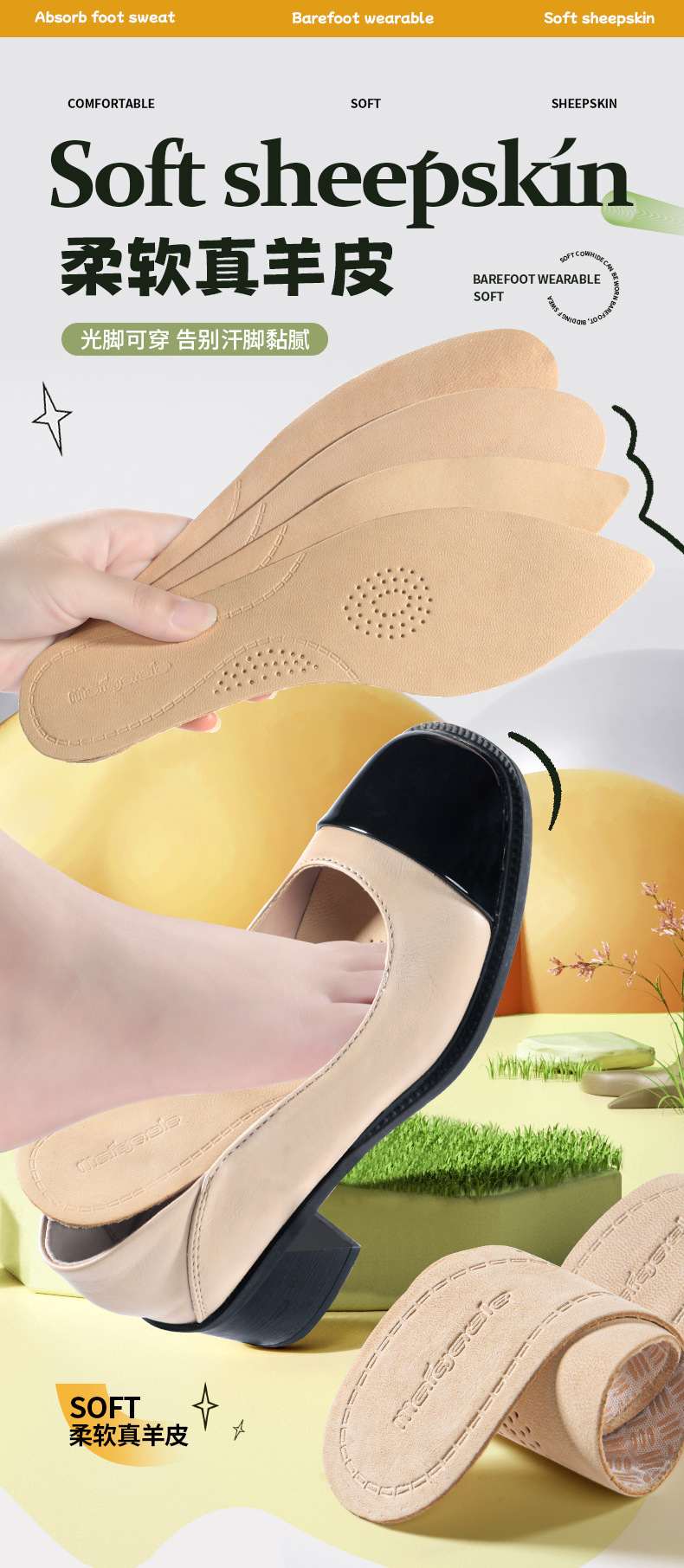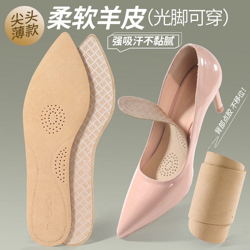 맨발 착용 가능한 여름 울트라 얇은 양가죽 안창 땀 흡수 탈취제 통기성 소프트 솔 안티 슬립 땀 가죽 하이힐 안창