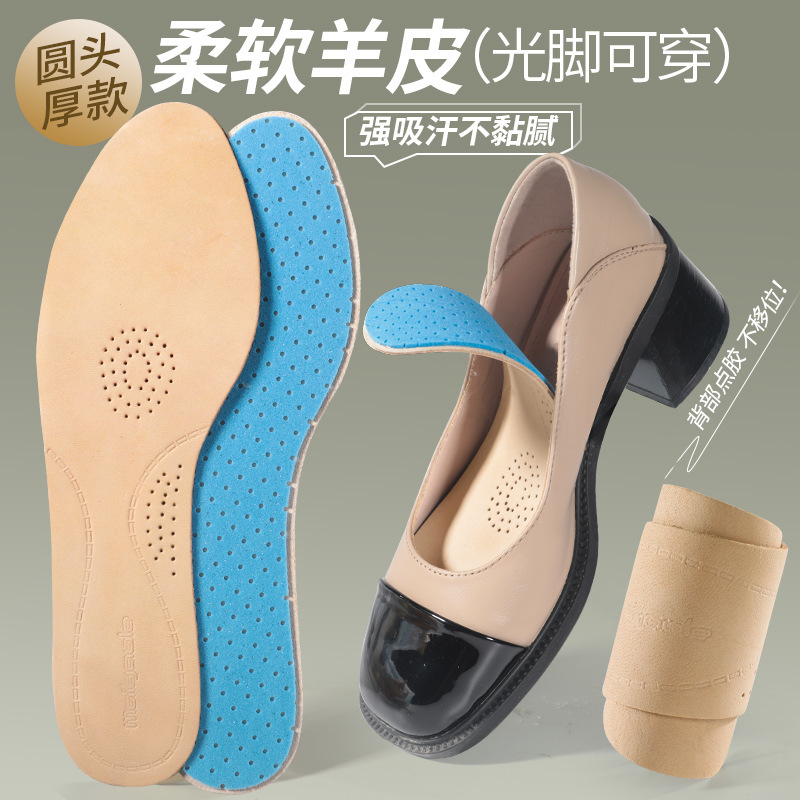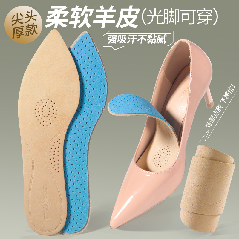 맨발 착용 가능한 여름 울트라 얇은 양가죽 안창 땀 흡수 탈취제 통기성 소프트 솔 안티 슬립 땀 가죽 하이힐 안창스토어 가기