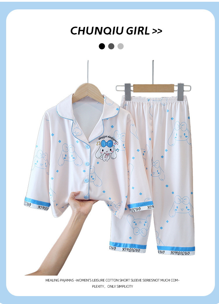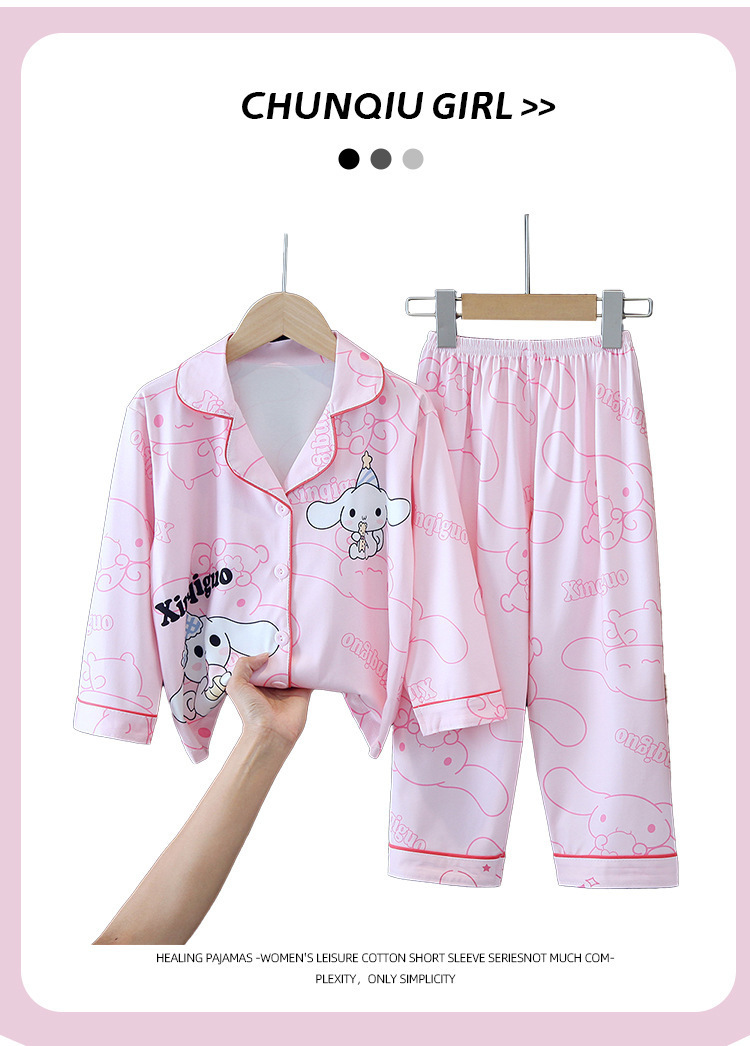 국경 간 폭발 어린이 잠옷 소녀 봄과 가을 긴 소매 카디건 세트 소녀 중년 어린이 아기 홈 옷