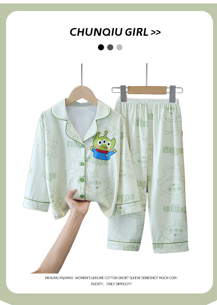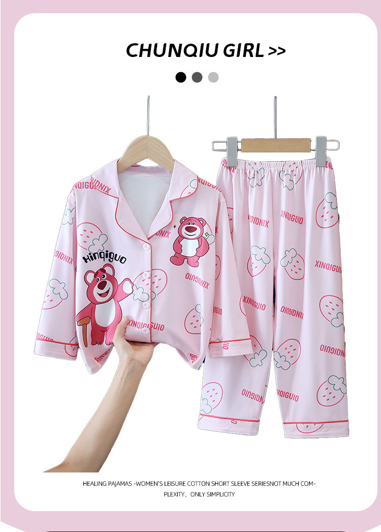 국경 간 폭발 어린이 잠옷 소녀 봄과 가을 긴 소매 카디건 세트 소녀 중년 어린이 아기 홈 옷스토어 가기