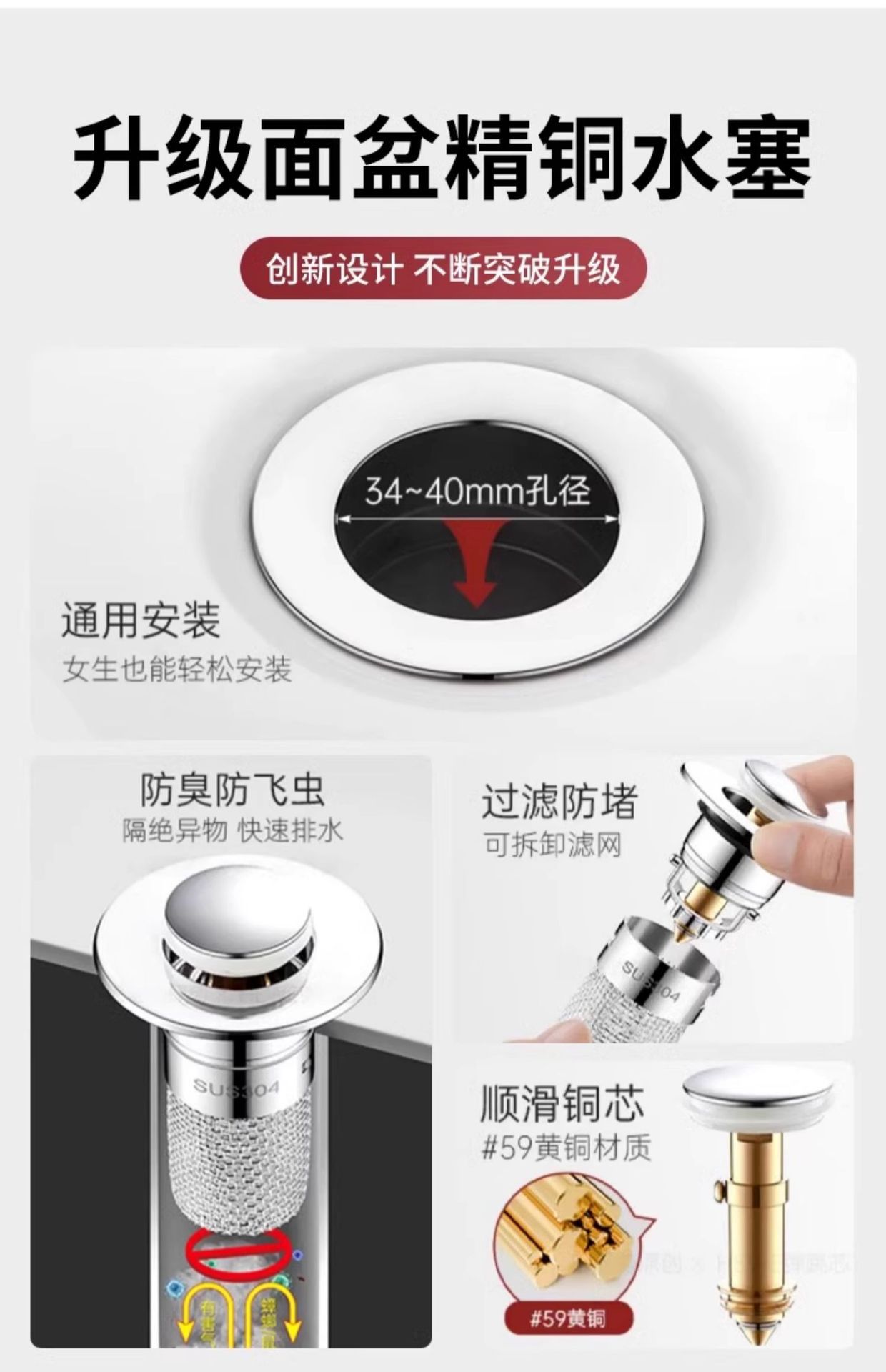 ✅ 국경 간 세면대 배수구 바운스 코어 세면대 누수 마개 필터 세면대 바운스 마개 코어 범용