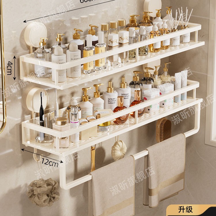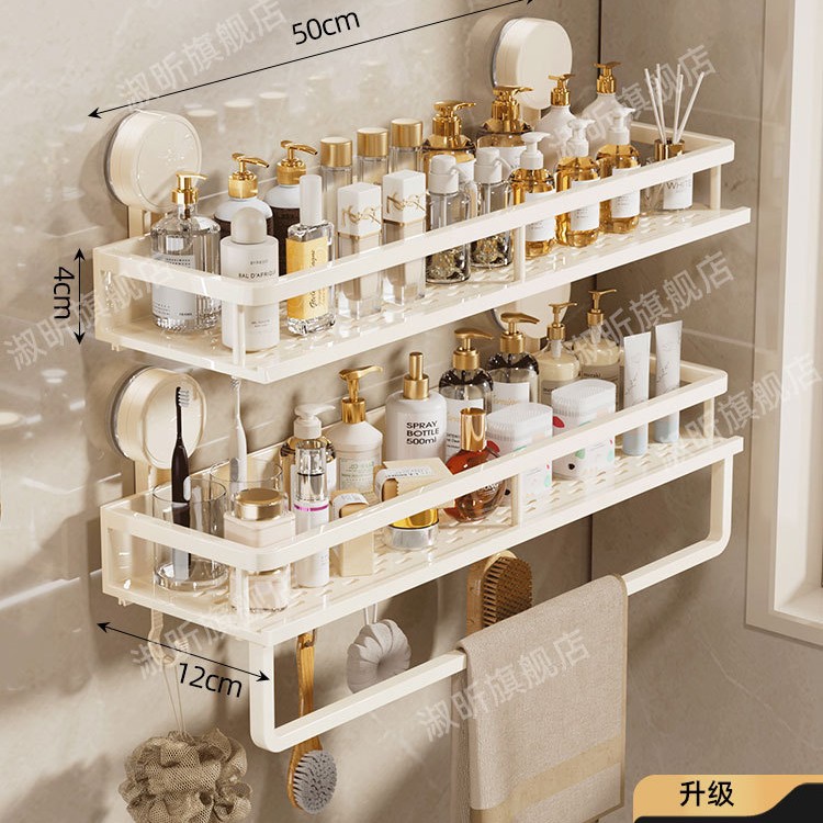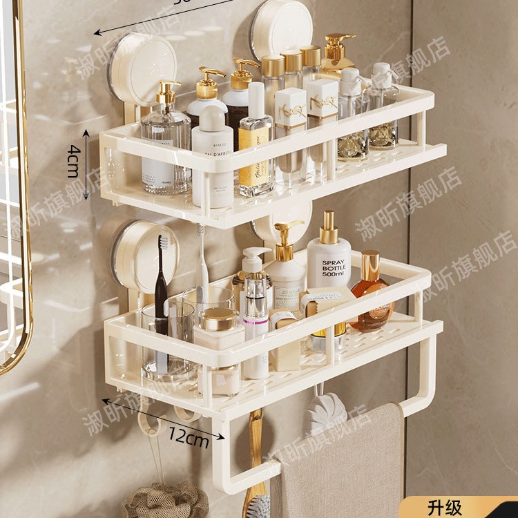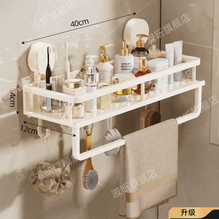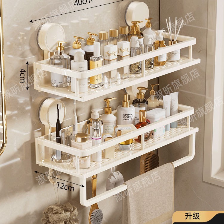 • 로드와 후크가 있는 밀크 화이트 더블 레이어 60cm 흡입 컵 보관 랙