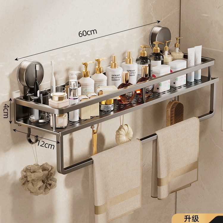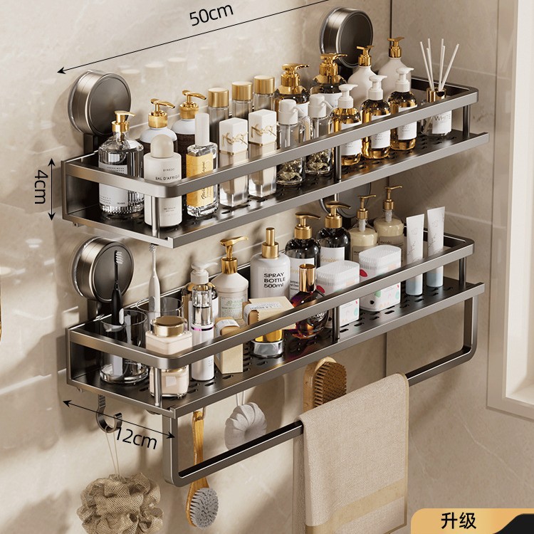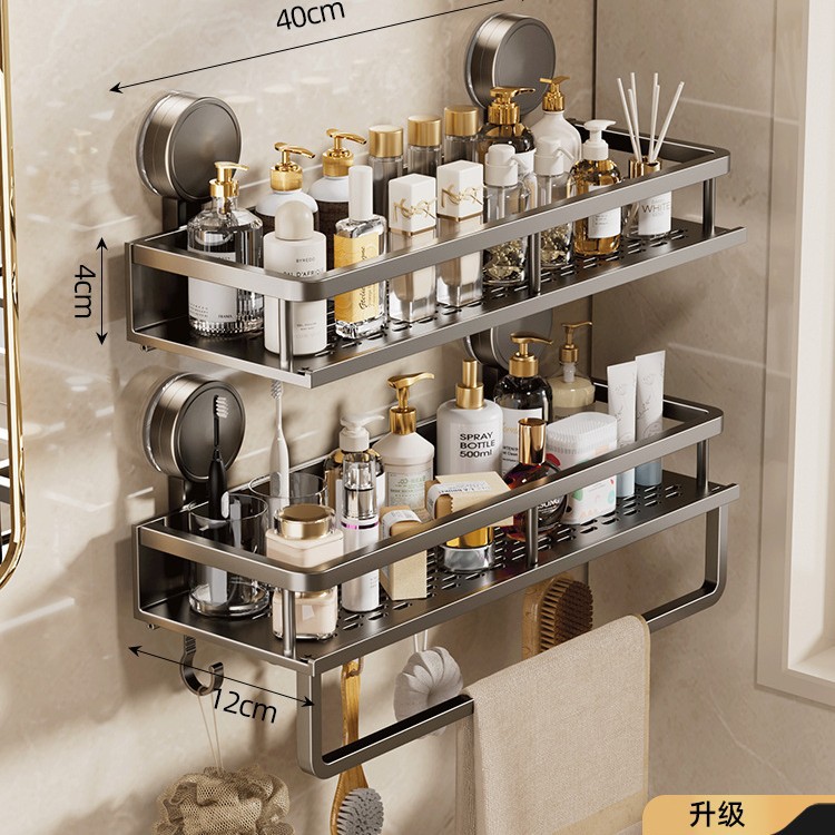 • 건 그레이 - 막대와 후크가 있는 이중층 60cm 흡입 컵 보관 랙