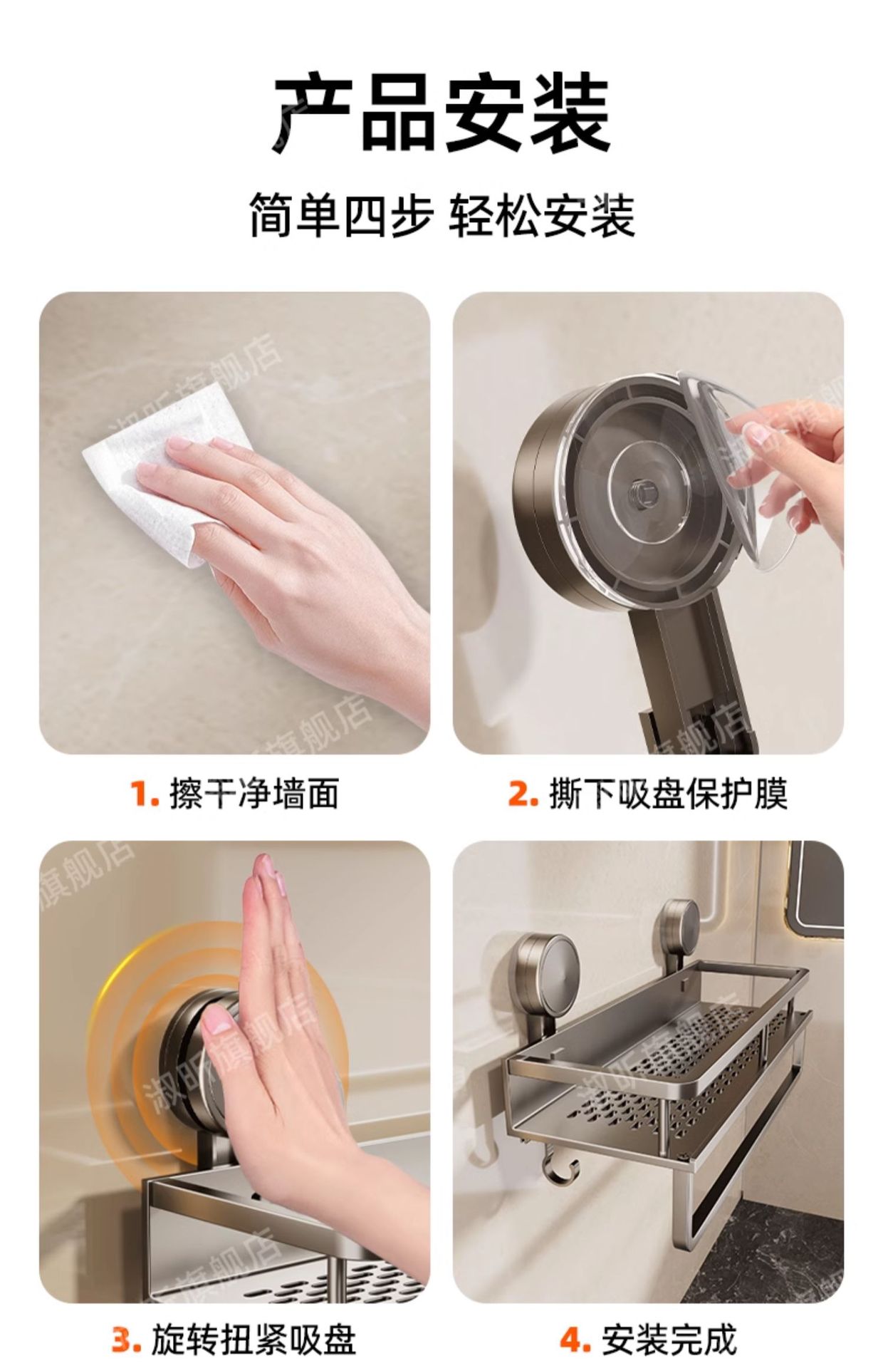 욕실 화장실용 흡입컵 수납선반, 펀치 없는 세면대, 벽걸이형, 벽걸이형 화장실 수납선반스토어 가기