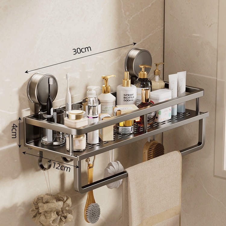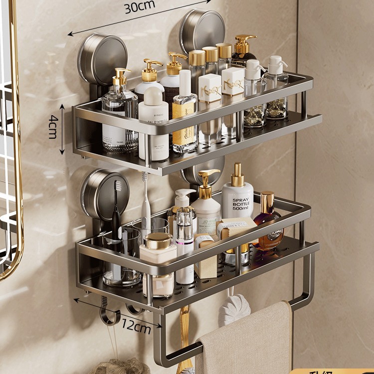 • 건 그레이 - 막대와 후크가 있는 이중층 30cm 흡입 컵 보관 랙