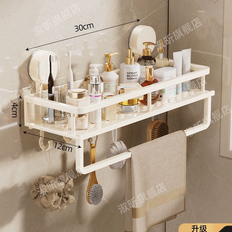 • 로드와 후크가 있는 유백색 이중층 30cm 흡입 컵 보관 랙