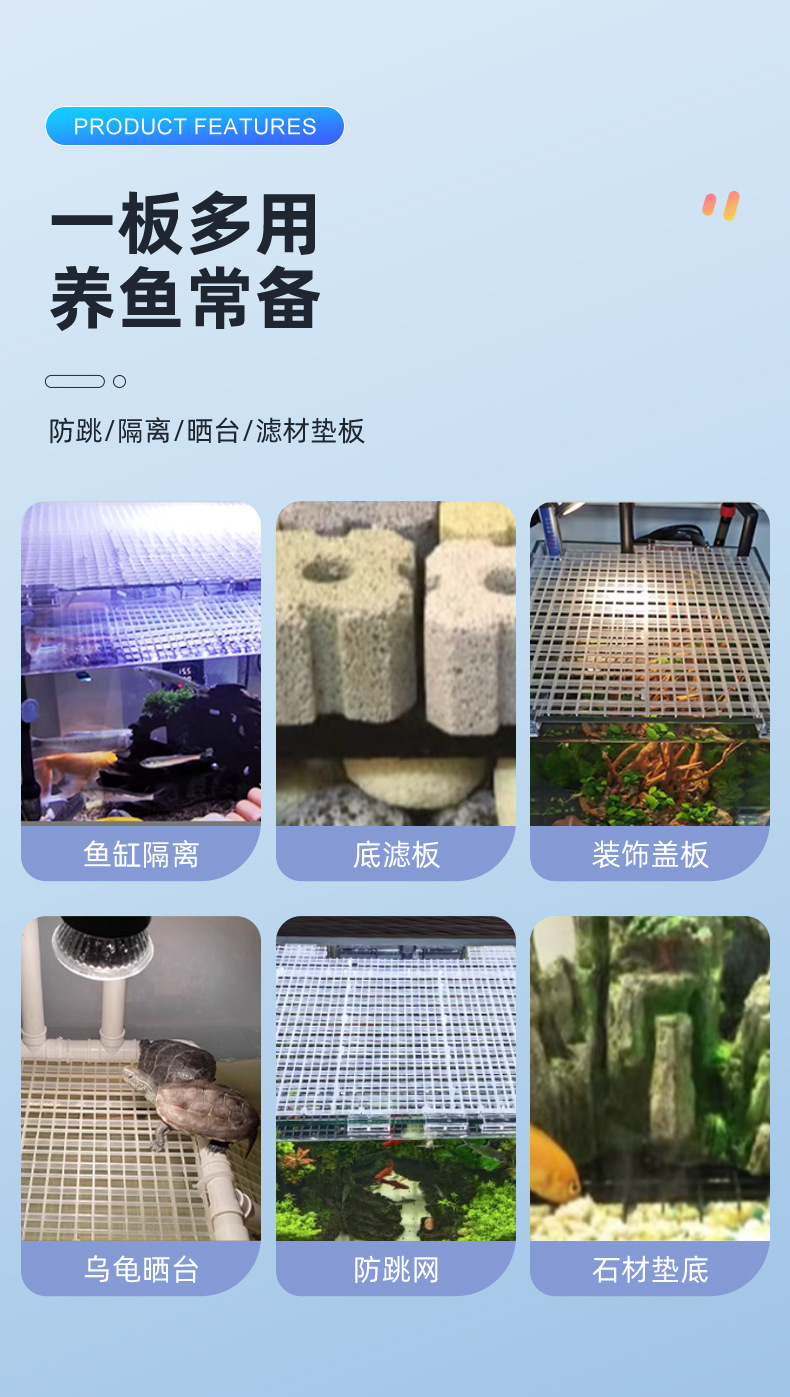 물고기 탱크 커버 안티 점프 그물 투명 흑백 그리드 플레이트 암호화 격리 그물 파티션 하단 필터 플레이트 수족관 하단 플레이트스토어 가기