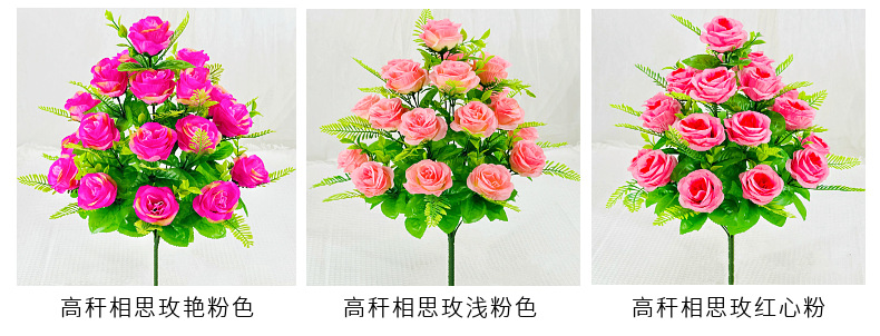 ✅ 18송이의 높은 줄기 아카시아 장미 꽃다발, 가짜 꽃, 플라스틱 꽃, 천 꽃, 아카시아 장미 꽃, 거실 탁상 장식
