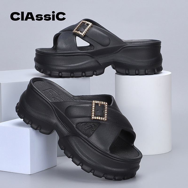 여성용 작은 높이 증가 여름 용 두꺼운 밑창 슬리퍼 최신 한 단어 슬리퍼 캐주얼 겉옷 플러스 사이즈 머핀 샌들과 슬리퍼 크로스 보더